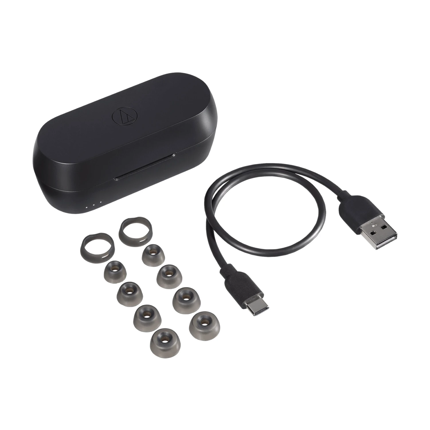 - Includes silicone eartips (XS/S/M/L), 30 cm (12″) USB-A/USB-C charging cable, 3D loop supports, and silicone rings