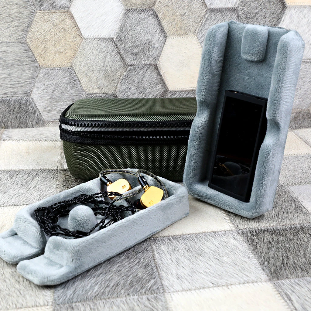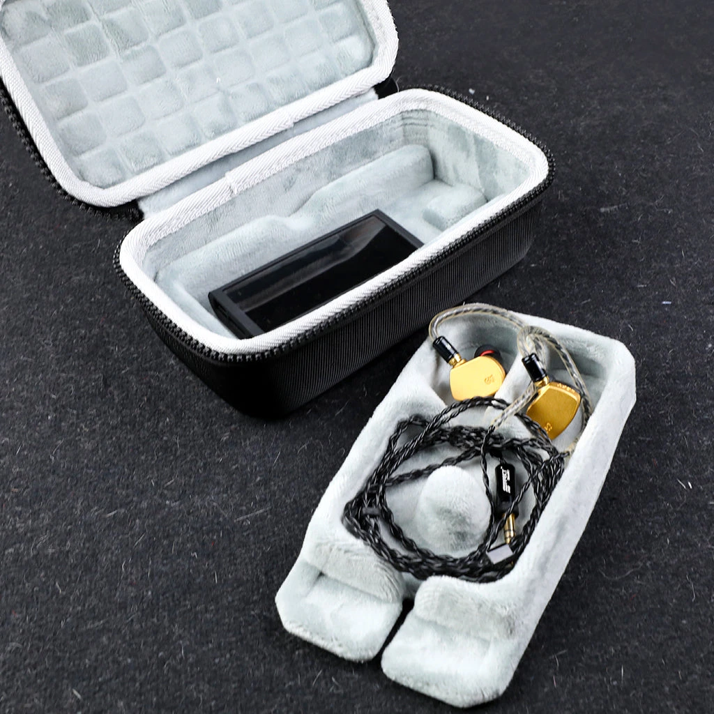 The case is thoughtfully crafted with a premium build, making it lightweight and the case features a built-in carrying handle, allowing you to easily transport your IEMs, Players and gadgets while on the go. It conveniently fits into various bags, backpacks, or luggage, ensuring you can take it with you anywhere you go. The interior of the case is lined with luxurious velvet material, which not only adds a touch of luxury but also protects your accessories from scratches and damage. With its lightweight and compact design, makes it convenient to take anywhere you go.