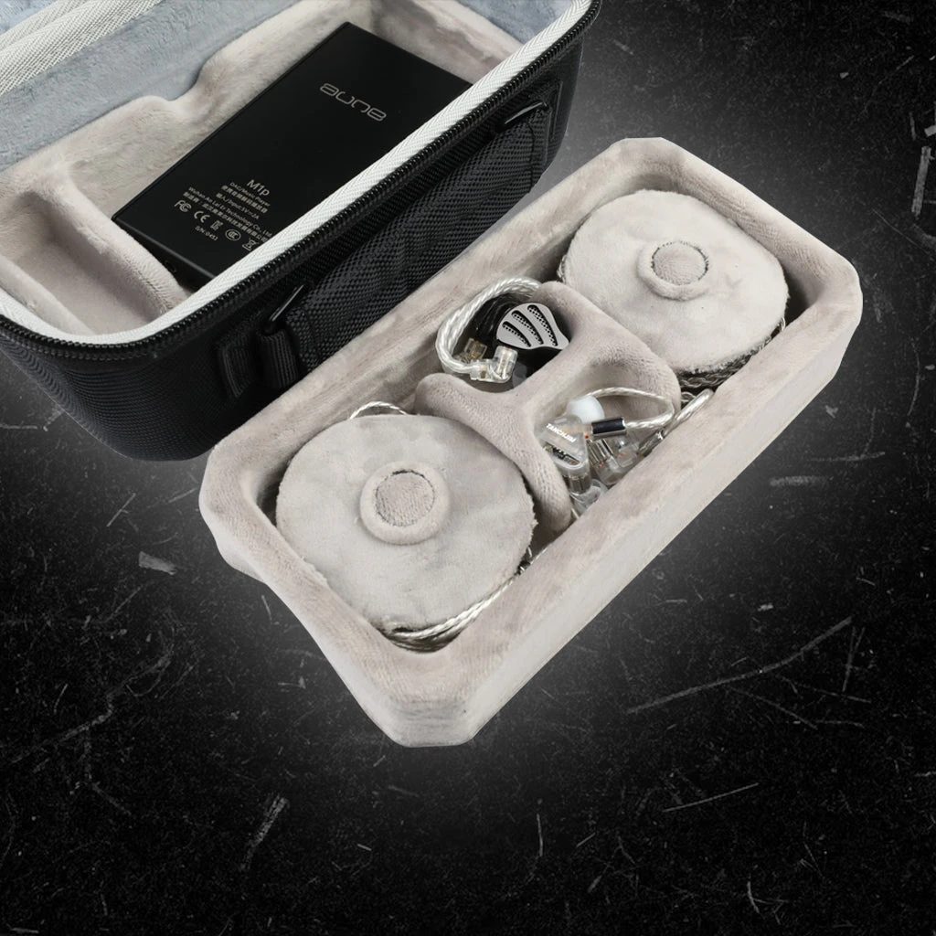 The earphone case is smartly designed with two compartments. The upper compartment is designed to securely hold two IEMs, while a separate compartment is specifically designated for your DAC and AMP. This ensures that you can easily carry and protect your audio equipment in an organized manner.