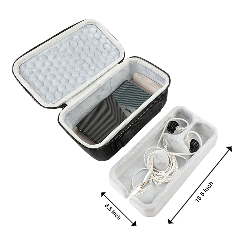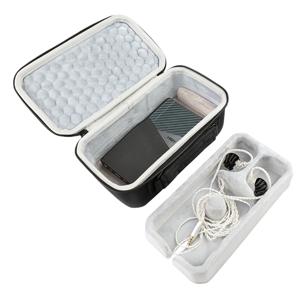 The earphone case is designed with two compartments. The upper compartment is made to safely store IEMs, while a separate compartment is specifically meant for your DAP. This makes it easy for you to carry and protect your audio equipment in an organized way.