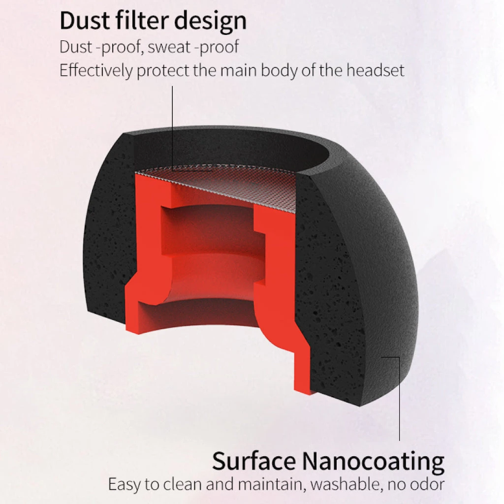 The Memory Foam Eartips has Dustproof, Sweat-Proof design which can effectively protect the main body of the headset. It is suitable for 3.5mm-6mm outlet diameter headphones.