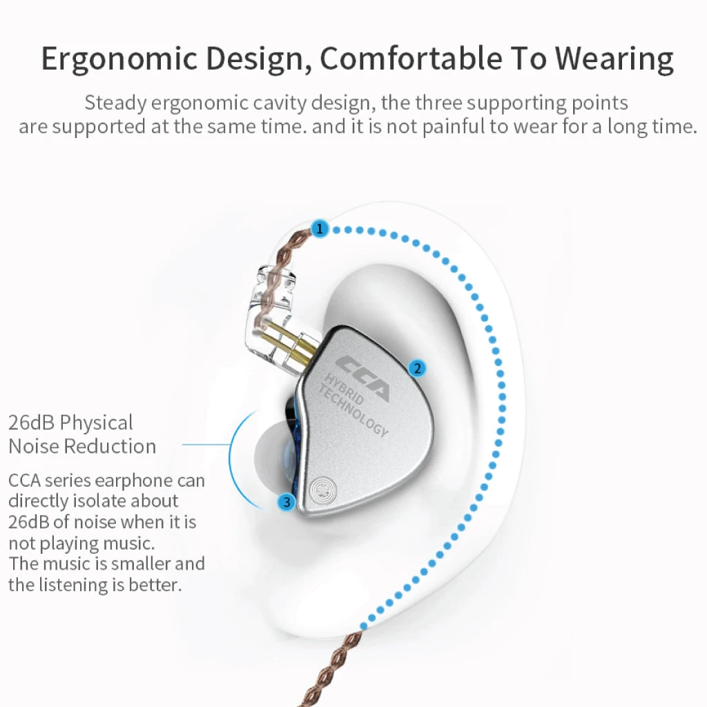 The CCA CA4 sports a 10mm mid and bass frequency dynamic driver and the 30095 high-frequency balanced armature driver. The tiny audio details that traditional earphones can’t capture are revealed by the CCA CA4. This Wired HIFI earphones deliver amazing bass and excellent detailed analytical ability. No matter what you hear, this earphone can provide you an excellent musical enjoyment.