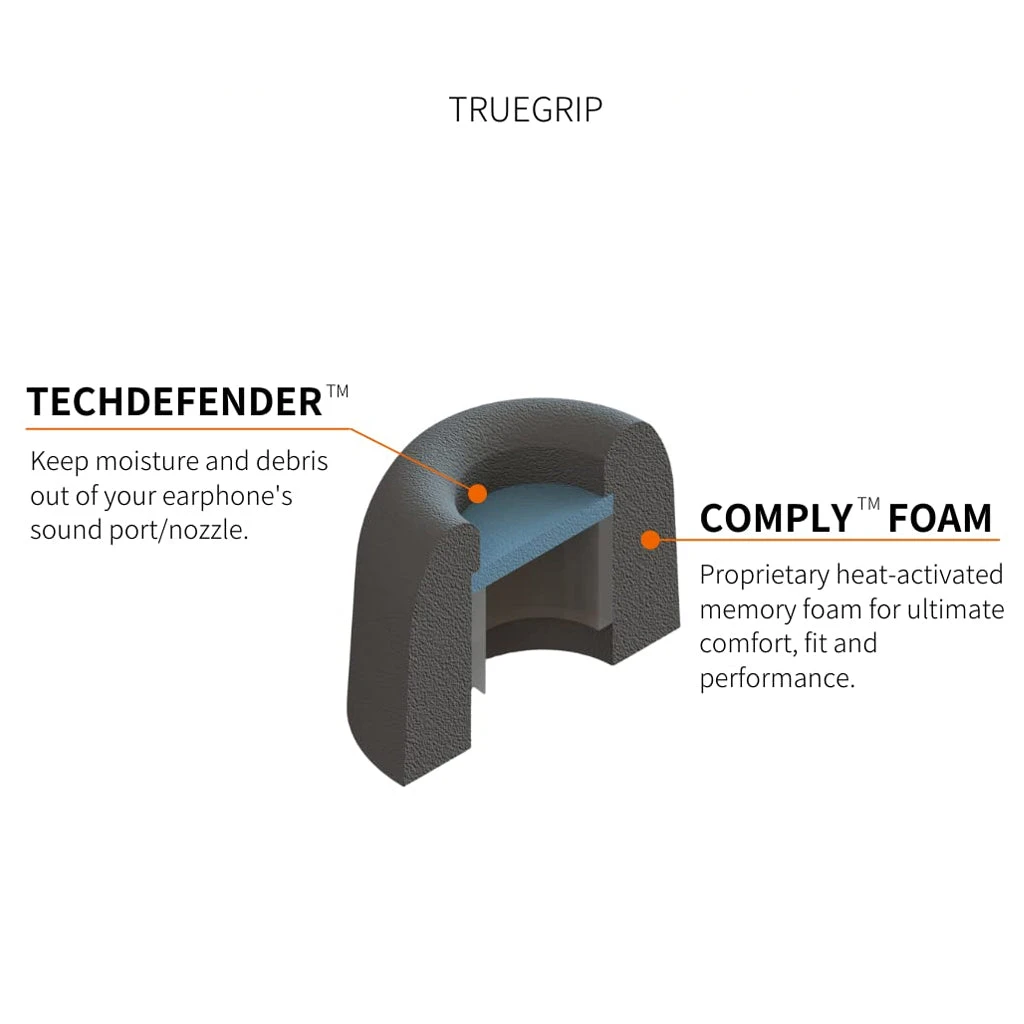 This Comply TrueGrip Memory Foam Eartips are slim and tapered to easily and securely fit into your ears. They respond to heat and allow air to flow, shaping themselves to your ear canal for a perfect fit. These foam tips are designed to be comfortable for extended use and to last a long time.