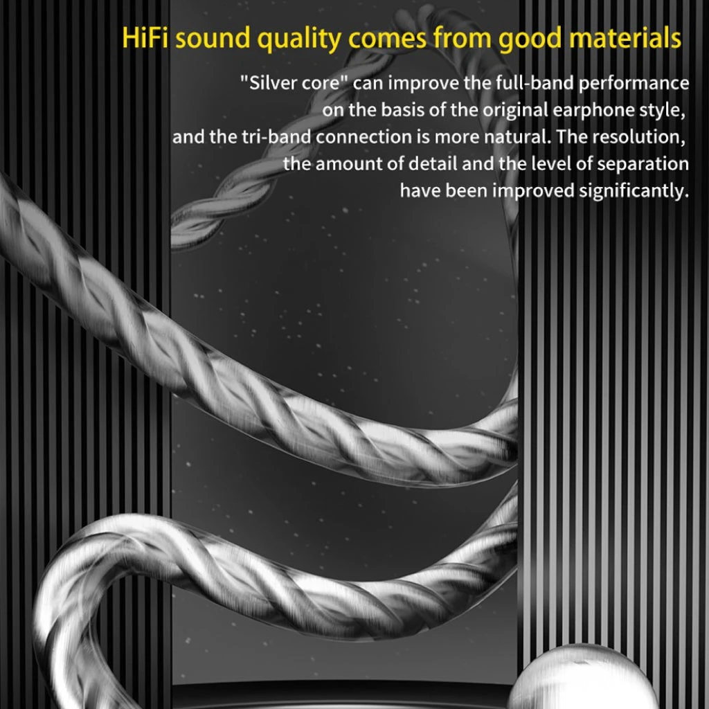 CVJ Mei comes with a high-purity 4-Strand Silver plated cable ensures outstanding audio performance with the pair. High-quality silver-plated material ensures smooth, high-resolution output with excellent clarity. It adopts 0.75mm 2 Pin connector and 3.5mm termination plug.