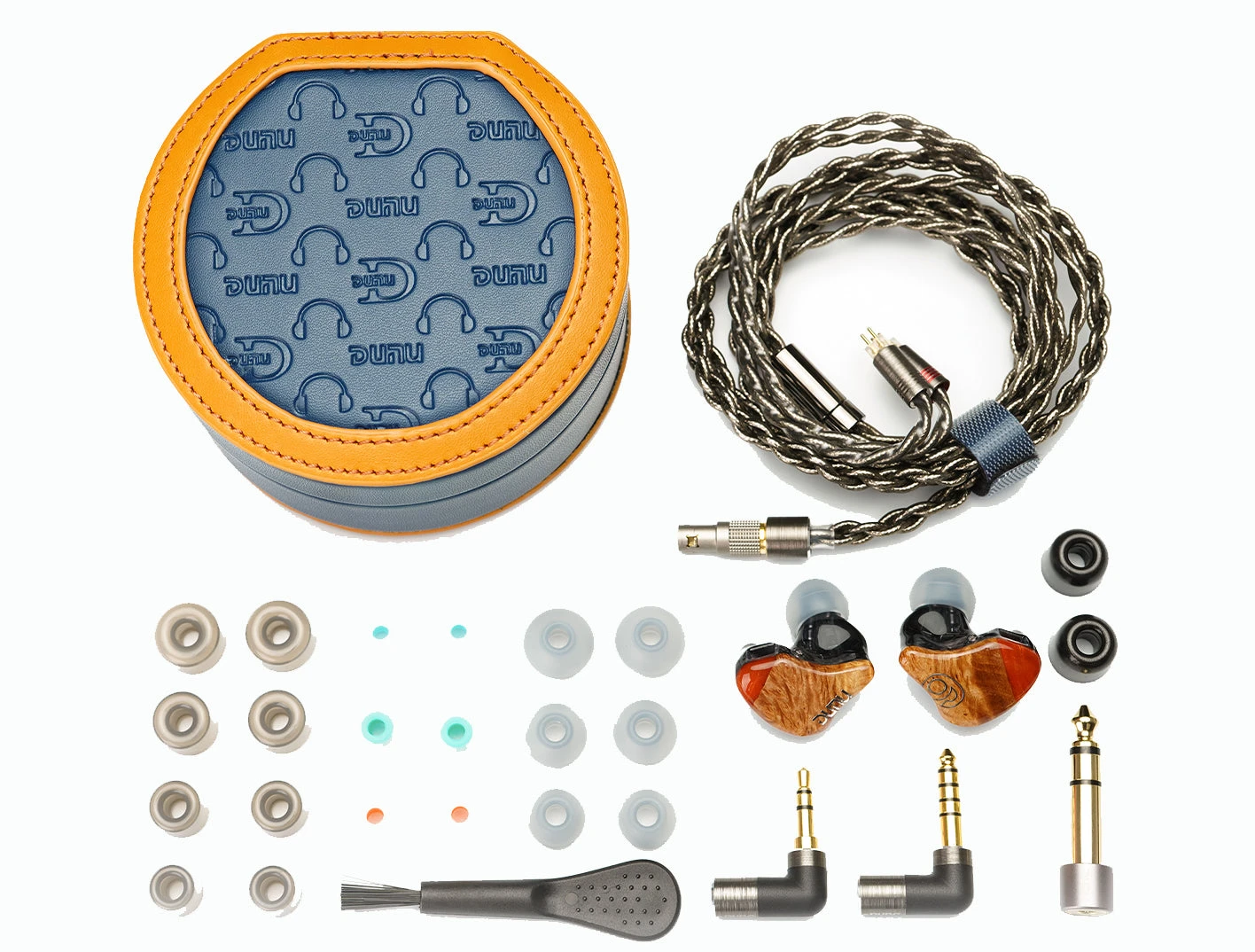 The DUNU SA6 MK2 is the culmination of masterful artistry. The ear shells are meticulously handcrafted through an intricate and labor-intensive process, yielding a warm, textured finish. These shells showcase specially chosen solid-stabilized wooden ear panels. While each panel shares similar hues, they possess distinct textures. Gold powder-infused resin courses through the design, exuding sophistication. The shell’s shape and profile have been fine-tuned and upgraded using a novel auricle model, resulting in a more voluminous form. This effectively enlarges the display area of the stunning designer panel while ensuring a comfortable fit. (Because it is purely handmade, the panel pattern of the headset is random.)