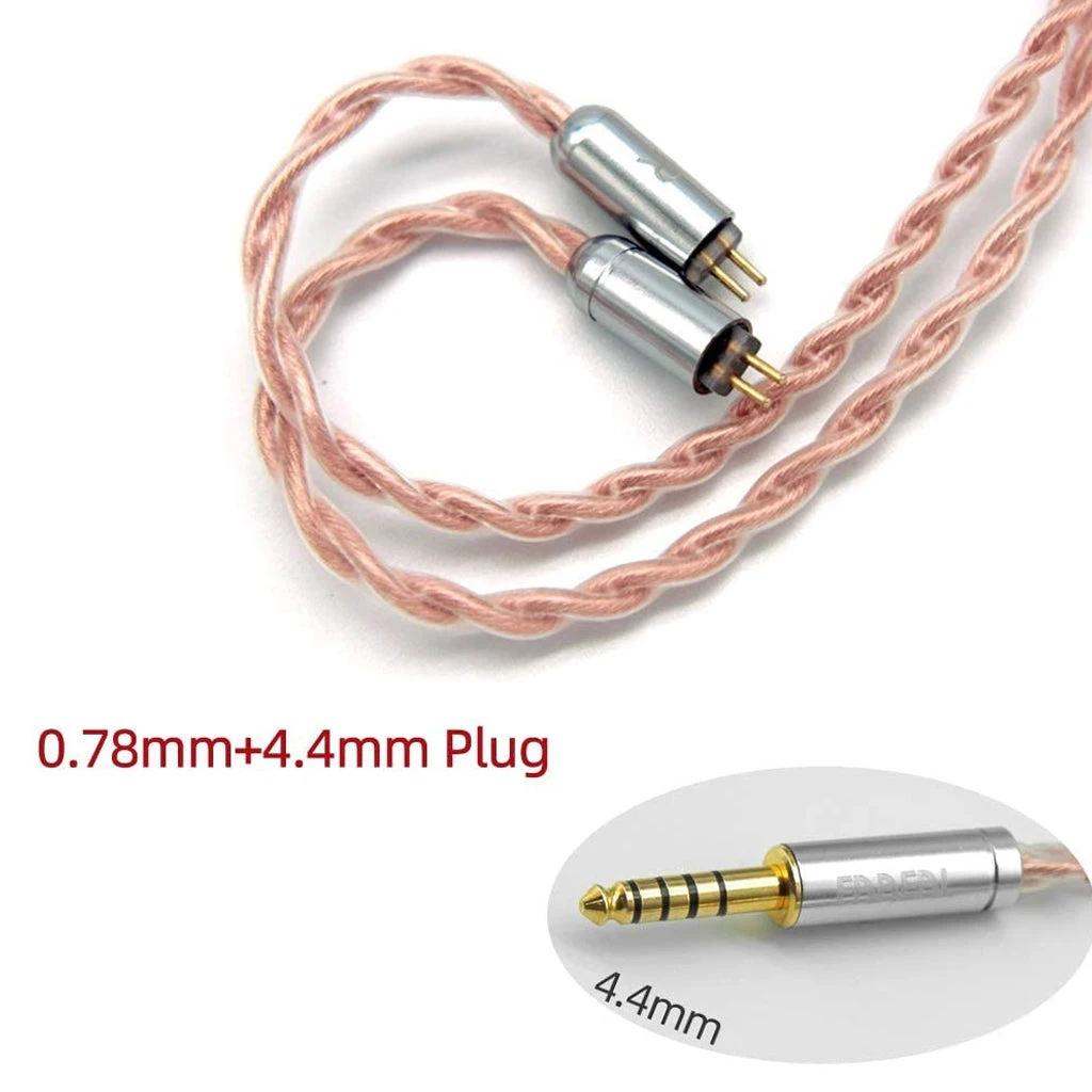 The cable offers compatibility with various audio sources through its gold-plated plugs. It supports two plug sizes: 3.5mm, and 4.4mm. These plugs can be used to connect the IEMs to different types of audio devices such as portable music players, smartphones, and amplifiers.