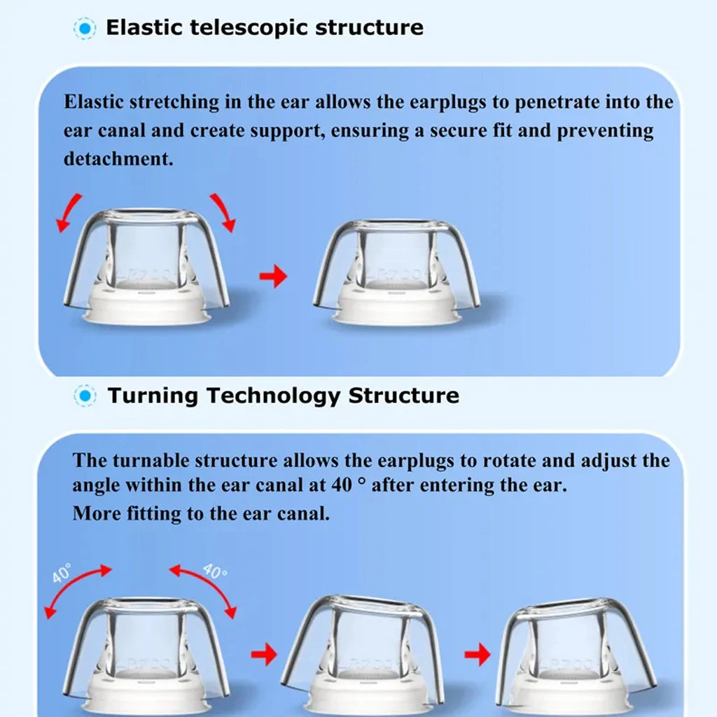 The Latex AR700+ Silicone Eartips are equipped with Turning Technology Structure, which enables a 40° rotation within the ear canal after insertion. This unique feature allows for easy angle adjustment, ensuring a snug fit that closely conforms to the shape of the individual’s ear canal.