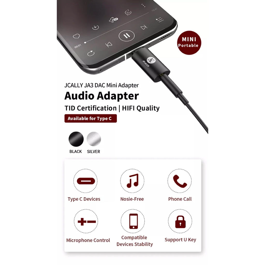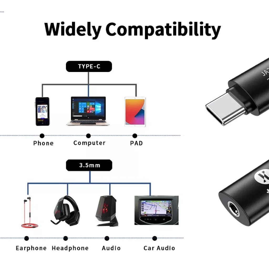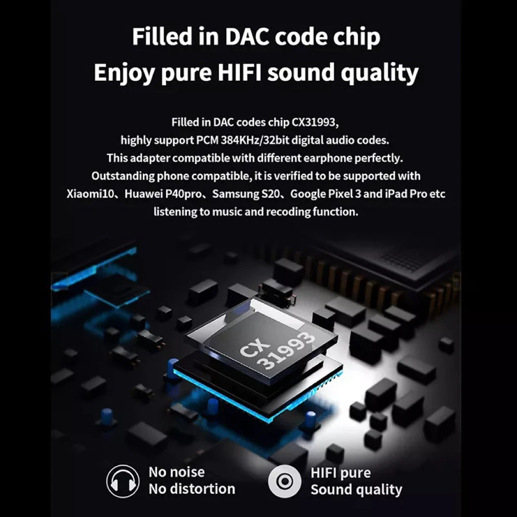 : Jcally JA3 dongle has Type C Male to 3.5MM Female and CX31993 chip. High-performance independent DAC decoder chip, supports up to 32bit/384Hz PCM output. This adapter compatible with different earphone perfectly, you can enjoy music fully and delightfully.