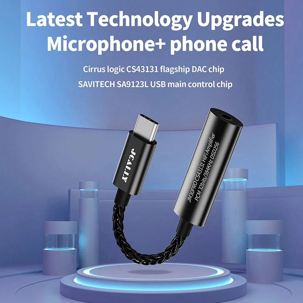 The JCALLY JM30PRO Portable DAC Dongle features a Type C Male to 3.5mm Female connection and is equipped with Cirrus logic CS43131 chip & SAVITECH SA9123L USB main control chip. Its high-performance independent DAC decoder chip supports DSD256 and PCM output of up to 32bits/384KHz, ensuring exceptional audio quality. It seamlessly works with various earphones, enabling you to immerse yourself completely in your favorite tunes, ensuring an immersive and pleasurable journey.