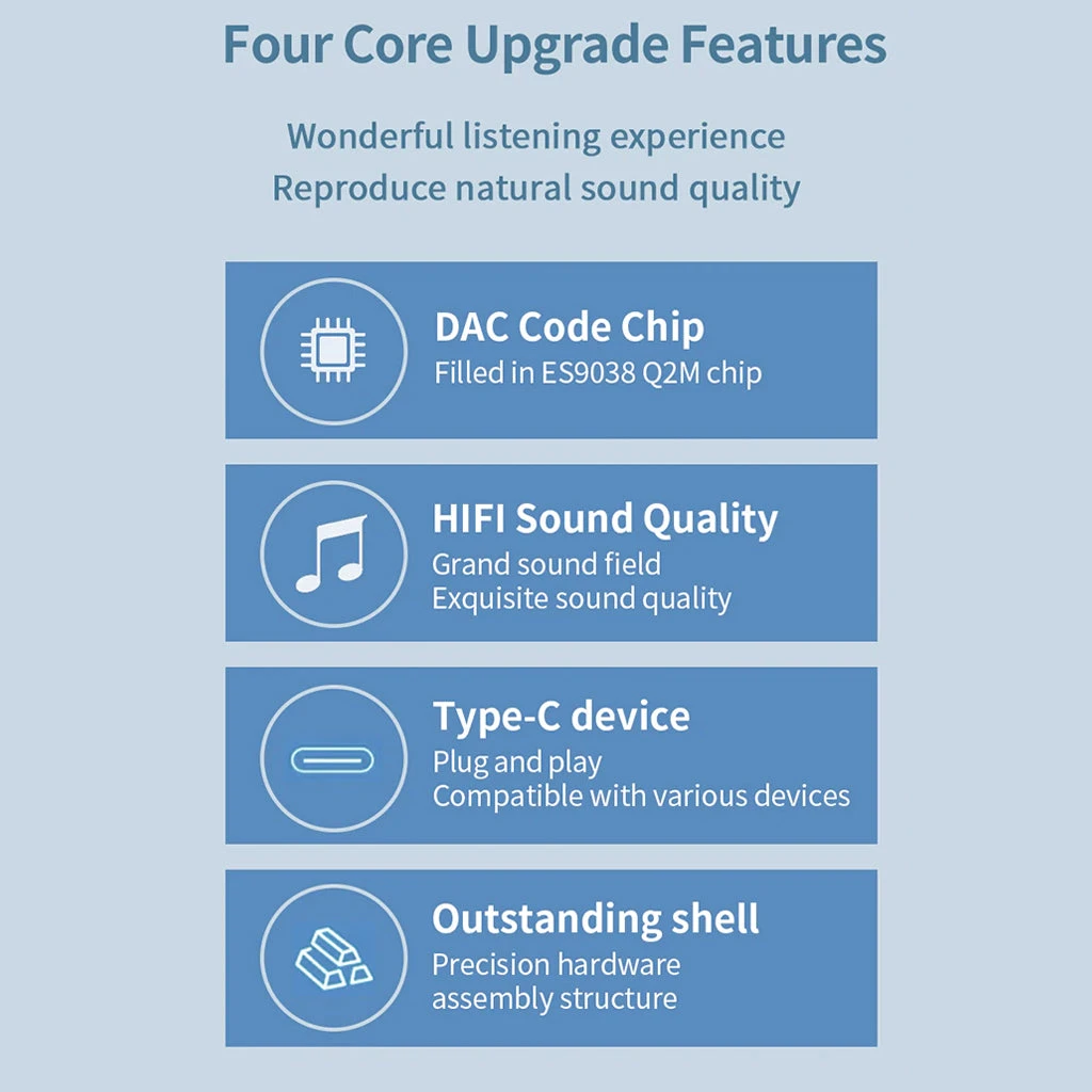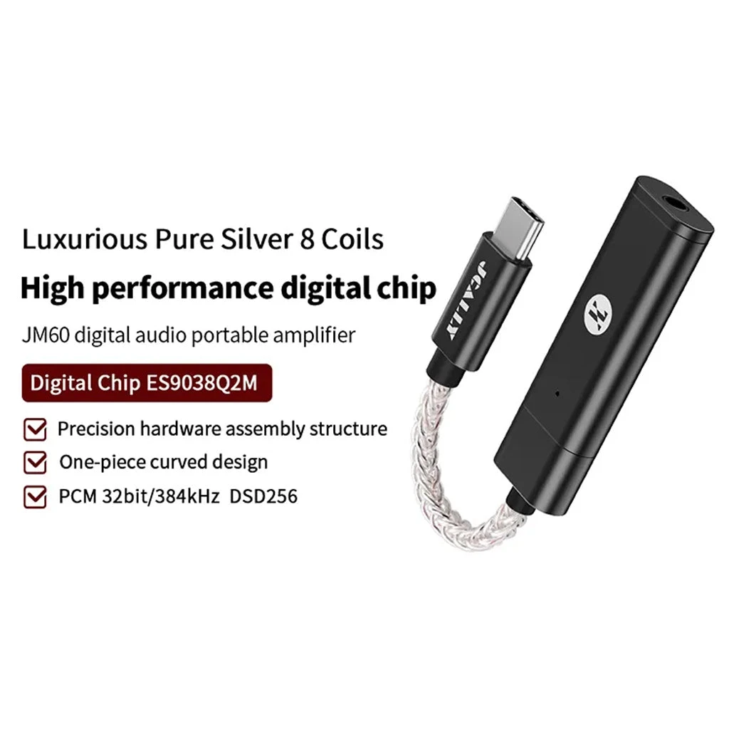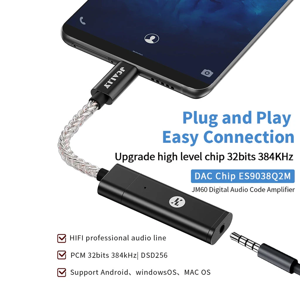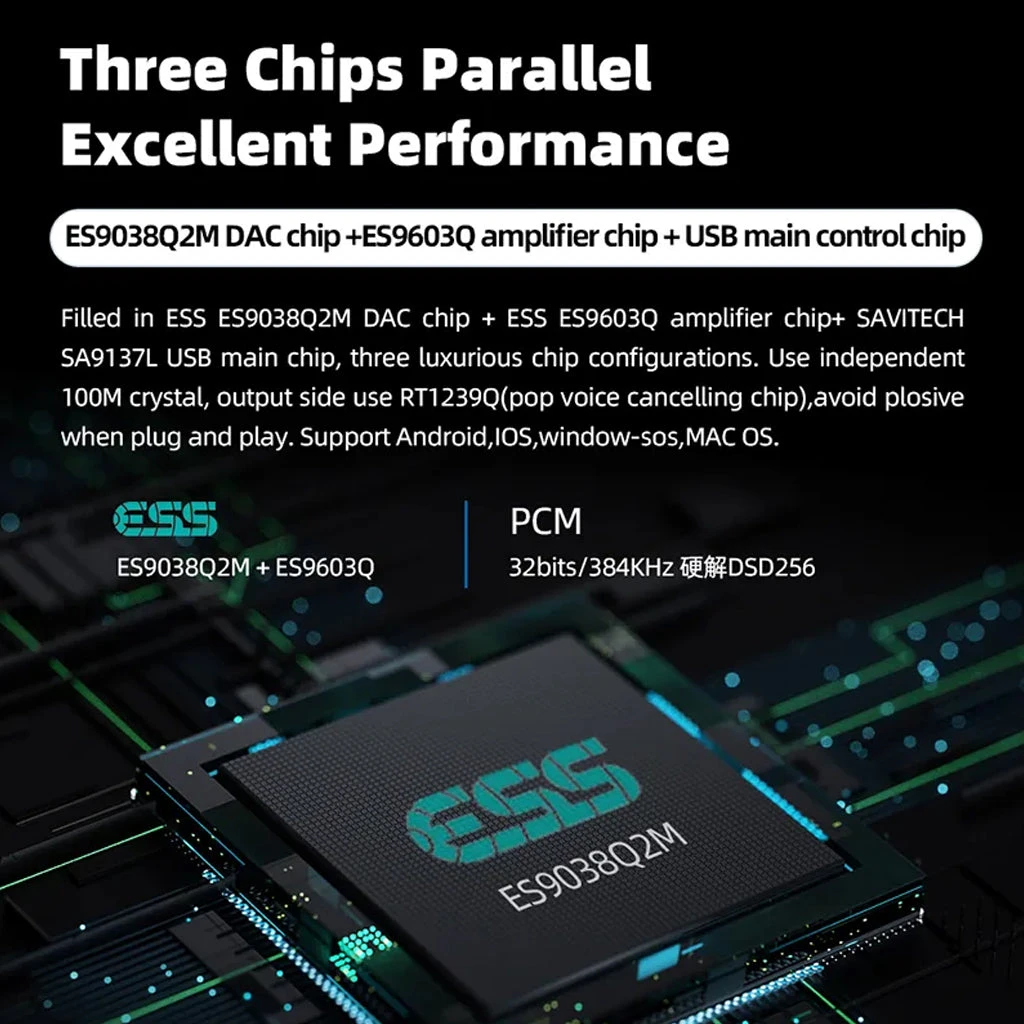 JCALLY JM60 is equipped with three high-end chips: the ESS ES9038Q2M DAC Chip, the ESS ES9603Q amplifier Chip, and the SAVITECH SA9137L USB main chip. It also has an independent 100M crystal for stable performance. It features an RT1239Q chip, which helps reduce unpleasant popping sounds when you plug and play the device.