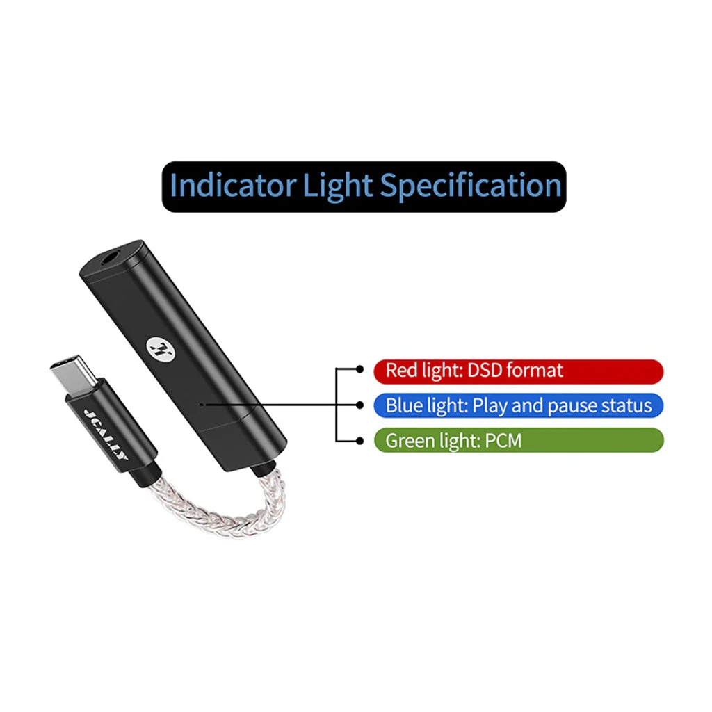 : JCALLY JM60 features a multi-color RGB indicator LED that glow in different colors based on the active file bit rate. It glows Green While decoding PCM audio signals, Blue for depicting Play/Pause status, and red while decoding DSD signals.