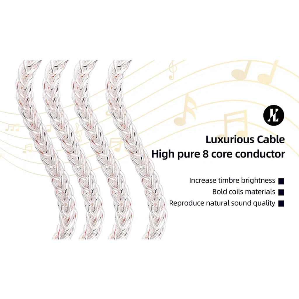 JCALLY JM60 cable has successfully passed a demanding 10,000-times bending test, showcasing its durability. Crafted with pure silver and featuring 8 cores, it is designed to enhance the listening experience by delivering a softened sound line. Silver-plated cable improves conductivity and contributes to improved audio quality.