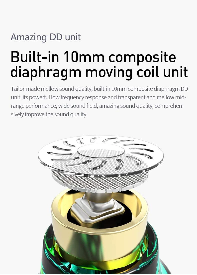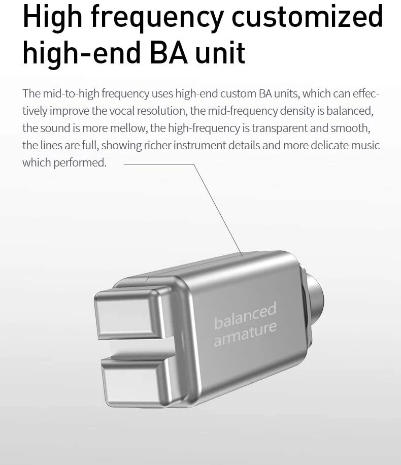 - 【1BA+1DD Hybrid Driver In Ear Monitor (PU+biological diaphragm) Unit】ts powerful low frequency response and transparent and mellow midrange performance, wide sound field, shocking sound quality.The mid-to-high frequency uses customized moving iron units, which can effectively improve the vocal resolution, the mid-frequency density is balanced, the sound is more mellow, the high-frequency is transparent and smooth, showing richer instrument details and delicate music which performed.