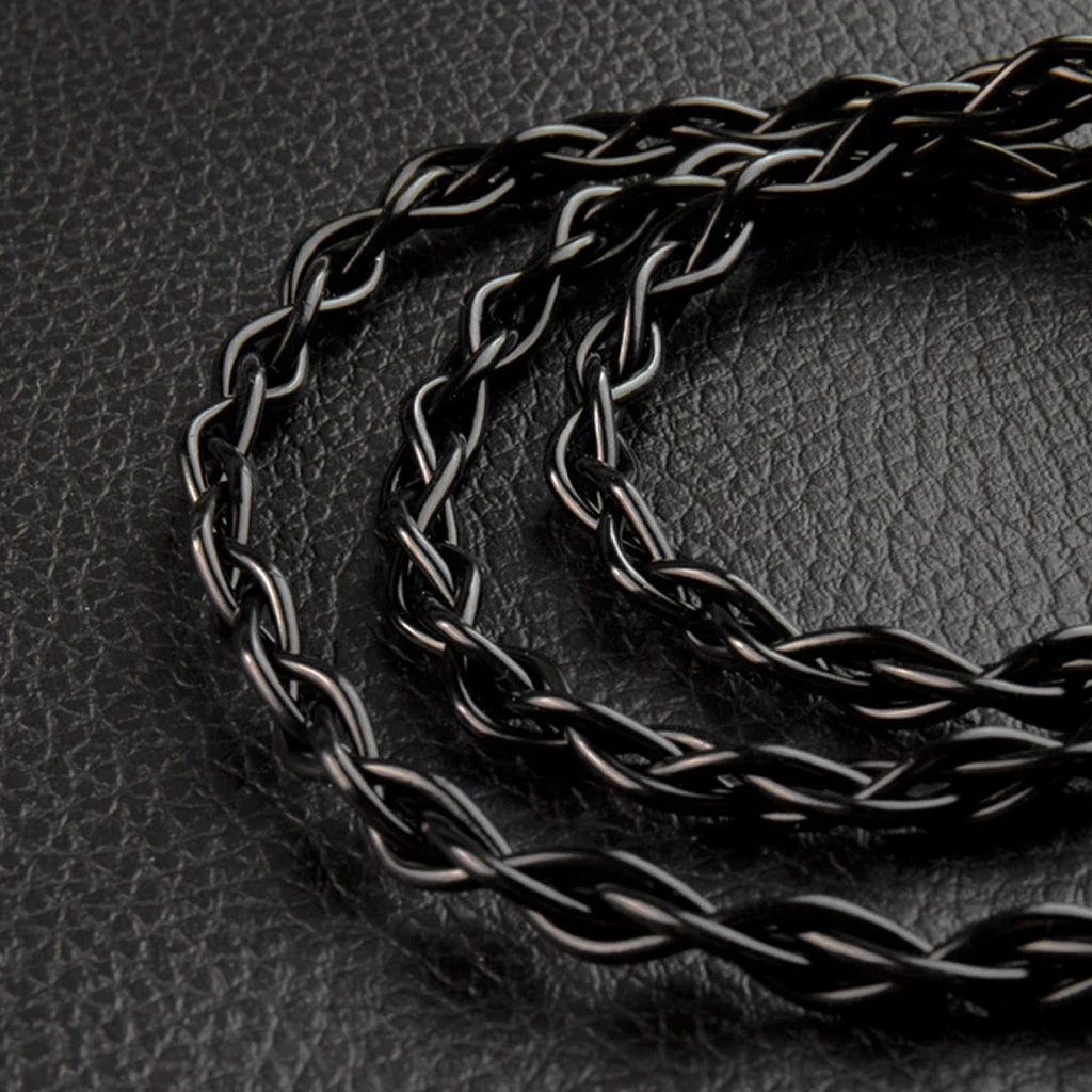 This cable design features four interwoven cores in a braided pattern, with a Litz structure and 60 strands per core. It minimizes interference and signal loss, ensuring clean transmission of audio, data, or power.