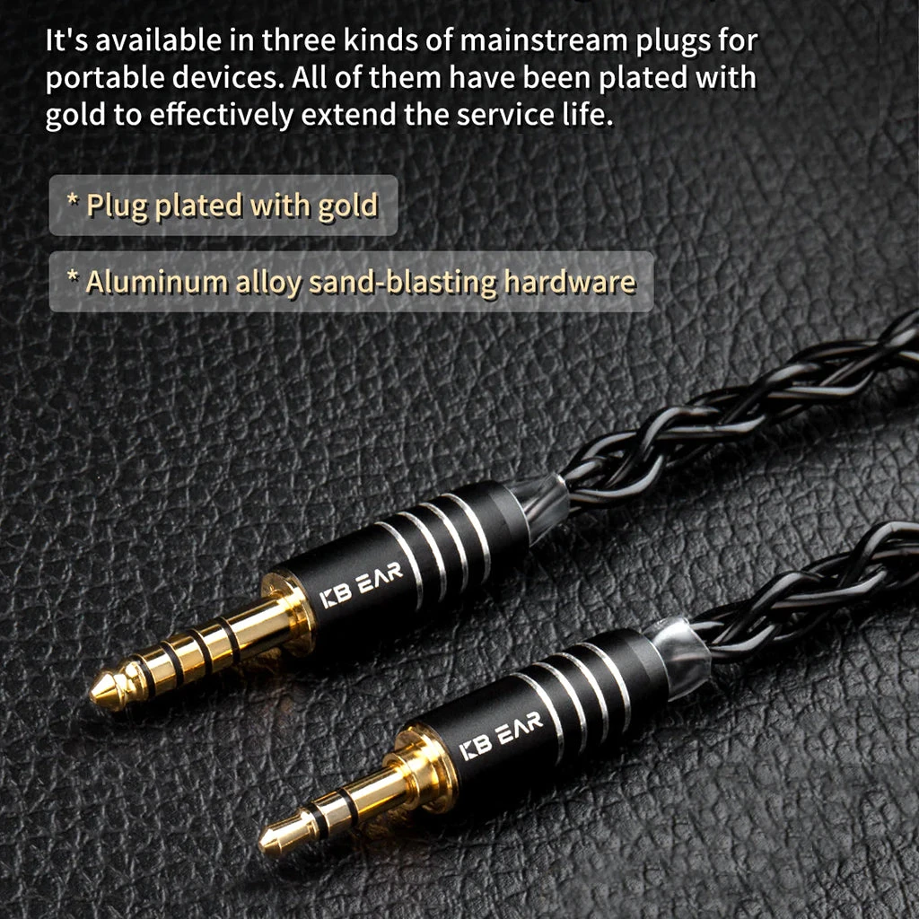 The KBEAR upgrade cable comes with various options and it is compatible with a wide range of IEM models that Has a 2-pin connector with a 0.78mm diameter and 3.5mm or 4.4mm plug, which is a standard audio connector that is compatible with most devices such as smartphones, tablets, laptops, and audio players.