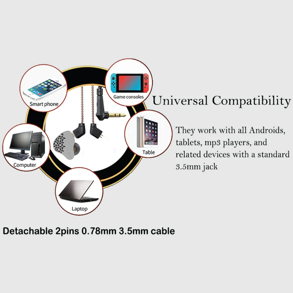 KBEAR Rosefinch comes with 4 Core OFC Cable which is detachable. The 0.75mm gold-plated pins can be used with a variety of 2 Pin standard upgrade cables. This 3.5mm gold plated plug has stable connection and fast data transmission rate. A 3.5mm gold-plated plug work with all Androids, tablets, mp3 Player and related devices.
