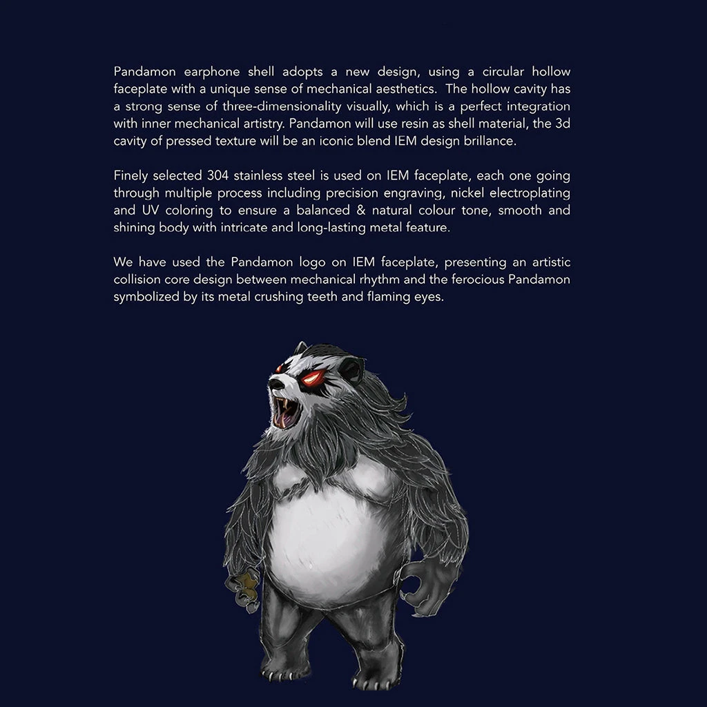 Celest Pandamon presents meticulously crafted ear cavity architecture that embodies both form and function. These shells are adorned with premium face covers made from top-tier 304L stainless steel, featuring the prominent Pandamon logo elegantly positioned at the center. The ergonomic design of the ear shells ensures a pleasurable listening journey, delivering comfort to the users.