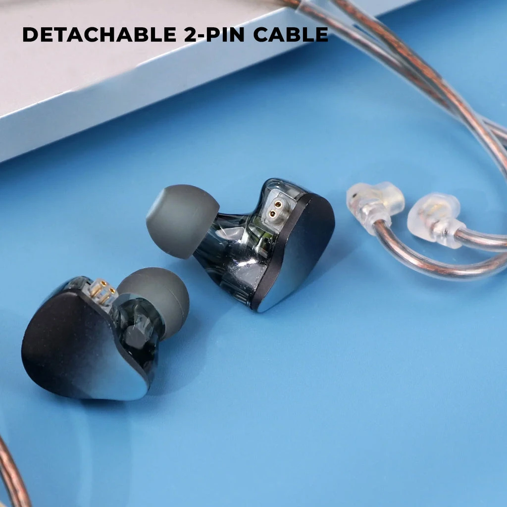 The Kiwi Ears Dolce is designed to fit comfortably in the ears, providing a secure and snug fit for extended listening sessions. It is crafted using premium grade materials, including a high-grade resin shell, to ensure durability and aesthetic appeal. Also features a detachable cable, which offers convenience for storage, replacement, or customization.