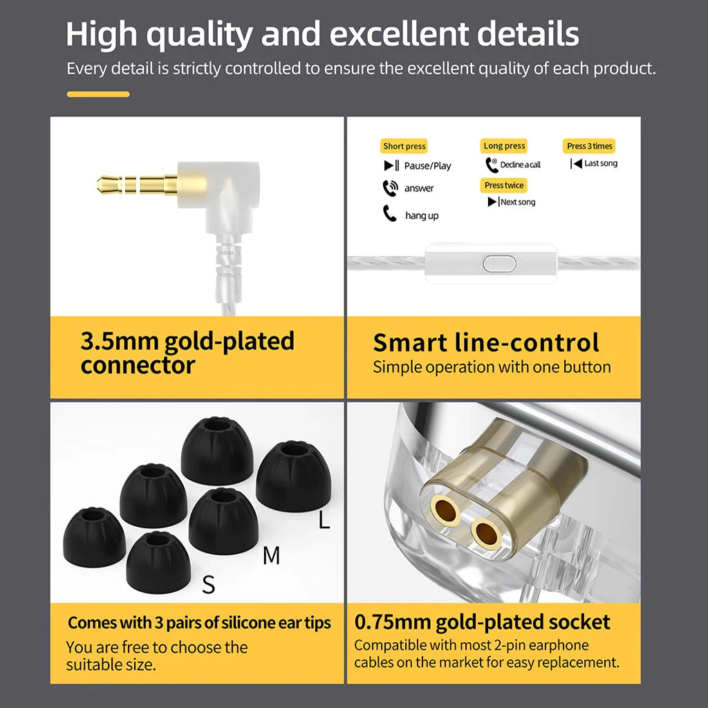 KZ AS24 earpiece monitor features an in-line microphone that is compatible with standard mobile phone HD calls. The microphone allows you to make and receive phone calls directly from the headphones, without needing to take out your phone. The microphone allows Answer/Hang up the call, short press to Pause/Play, Long press to Reject the call, and press twice to Next Song.