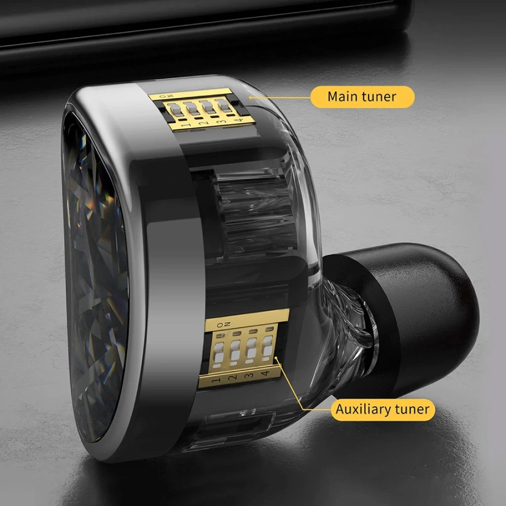 The KZ AS24 is presented in a choice of two variants. Customers have the flexibility to select the standard variant, which functions like a regular UIEM (Universal-Fit In-Ear Monitor). Alternatively, they can choose the special tunable variant equipped with 8 tuning switches. This tunable version empowers users to experiment with the Main and Auxiliary switches. The Main switches grant control over the complete band and bass frequencies, while the Auxiliary switches facilitate adjustments to the midrange and treble output.