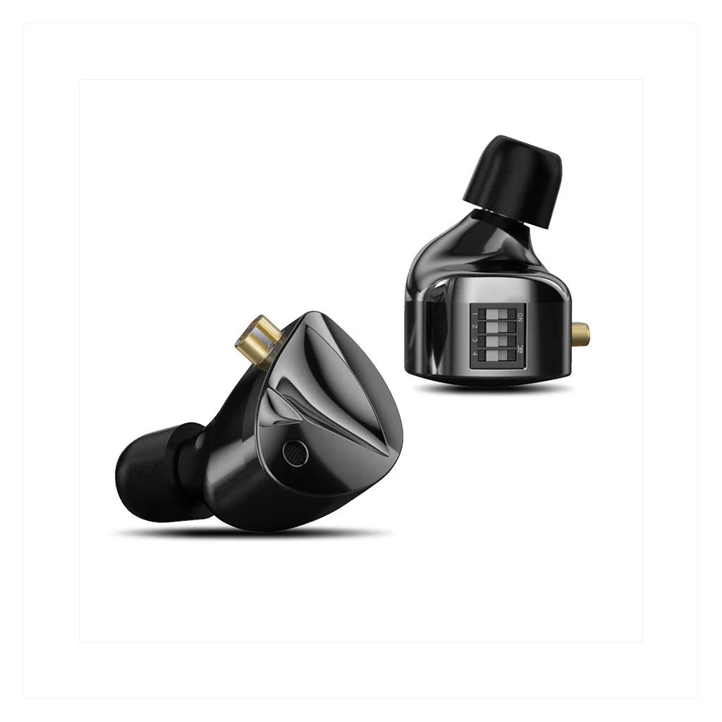 KZ D-Fi uses patented tuning technology and feature precise 4-gear electronic switches. The first three gears are dedicated to adjusting the low frequencies, each additional gear increases the low frequency. The fourth gear is designed to adjust the full frequency band. This allows users to customize and adjust 16 tuning styles according to their personal preferences and needs.