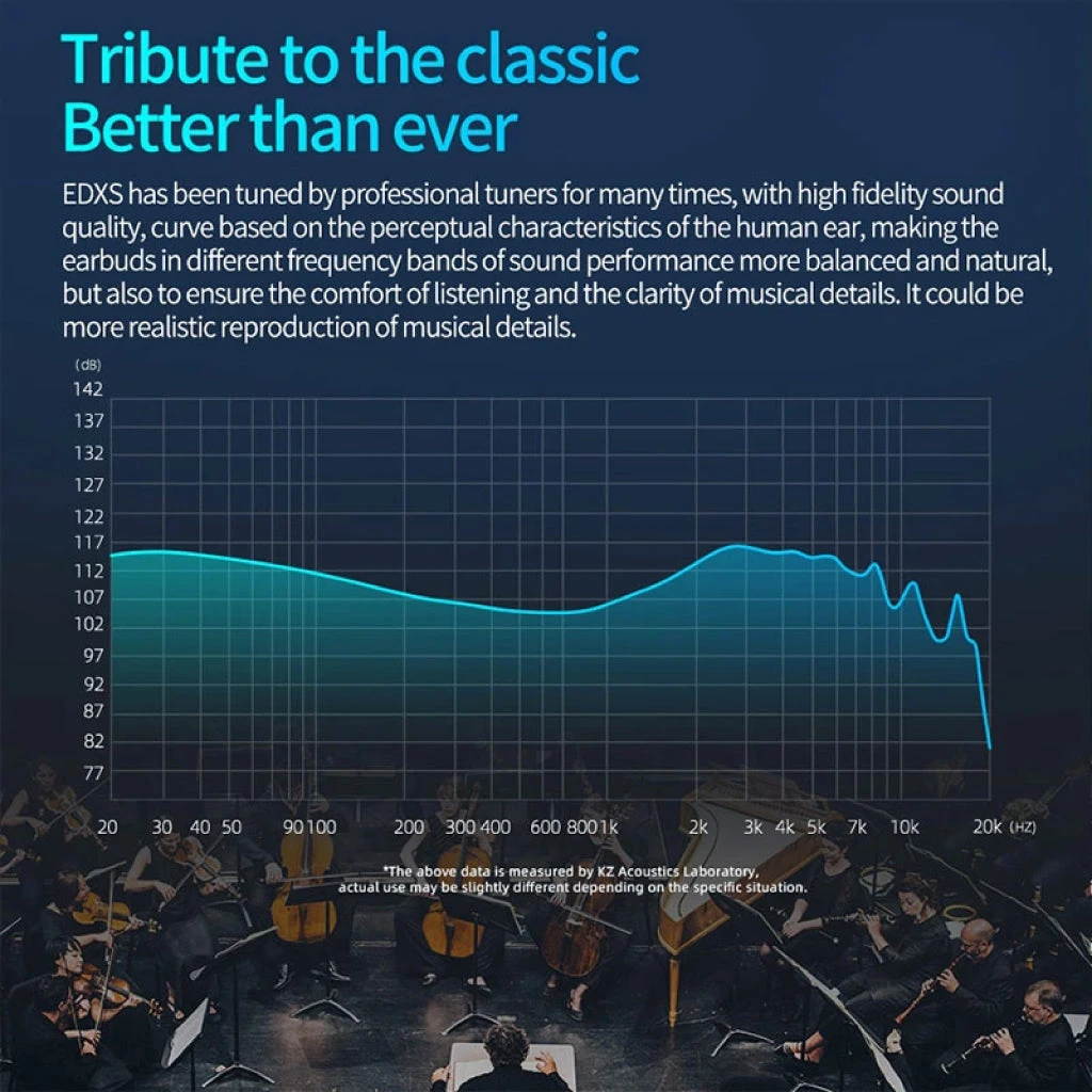 KZ EDXS features professional acoustic structure design that ensures an exceptional sound quality characterized by high resolution. This design element guarantees a rich and impactful bass, along with crisp and clear high and midrange frequencies. The earphones deliver a well-balanced and natural audio experience, creating an extraordinary listening experience