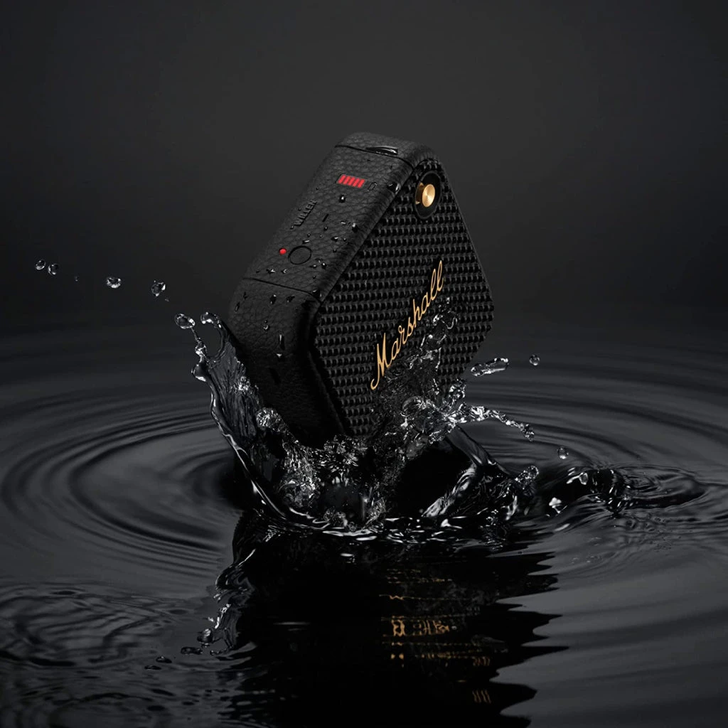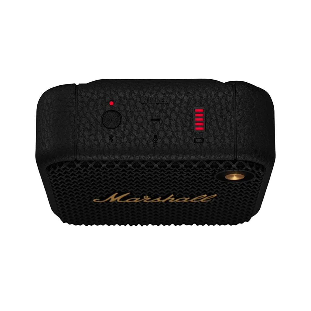 Willen portable speaker, produced by the brand Marshall. The speaker is described as being portable and delivering a signature sound quality that is consistent and reliable, even in unplanned musical sessions.