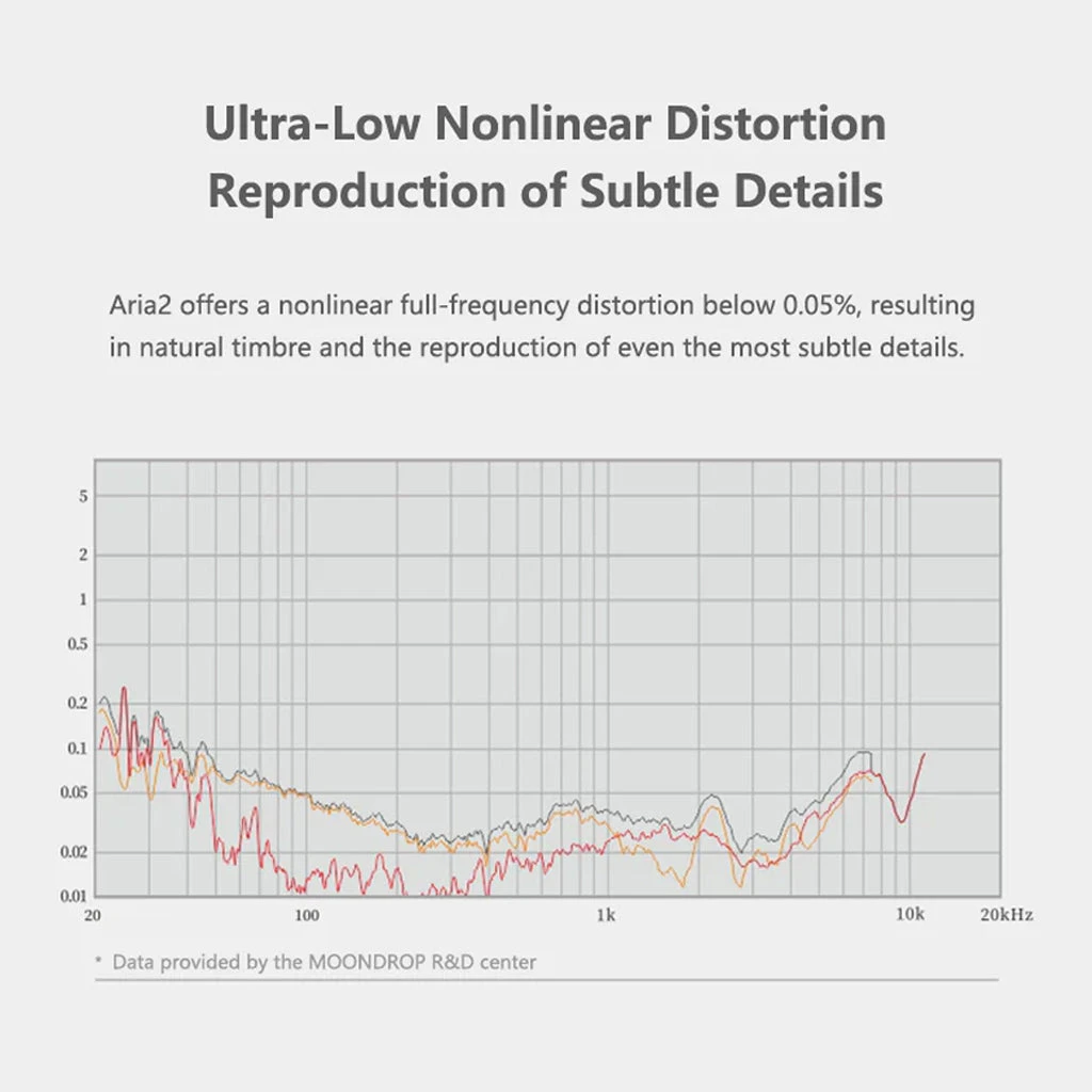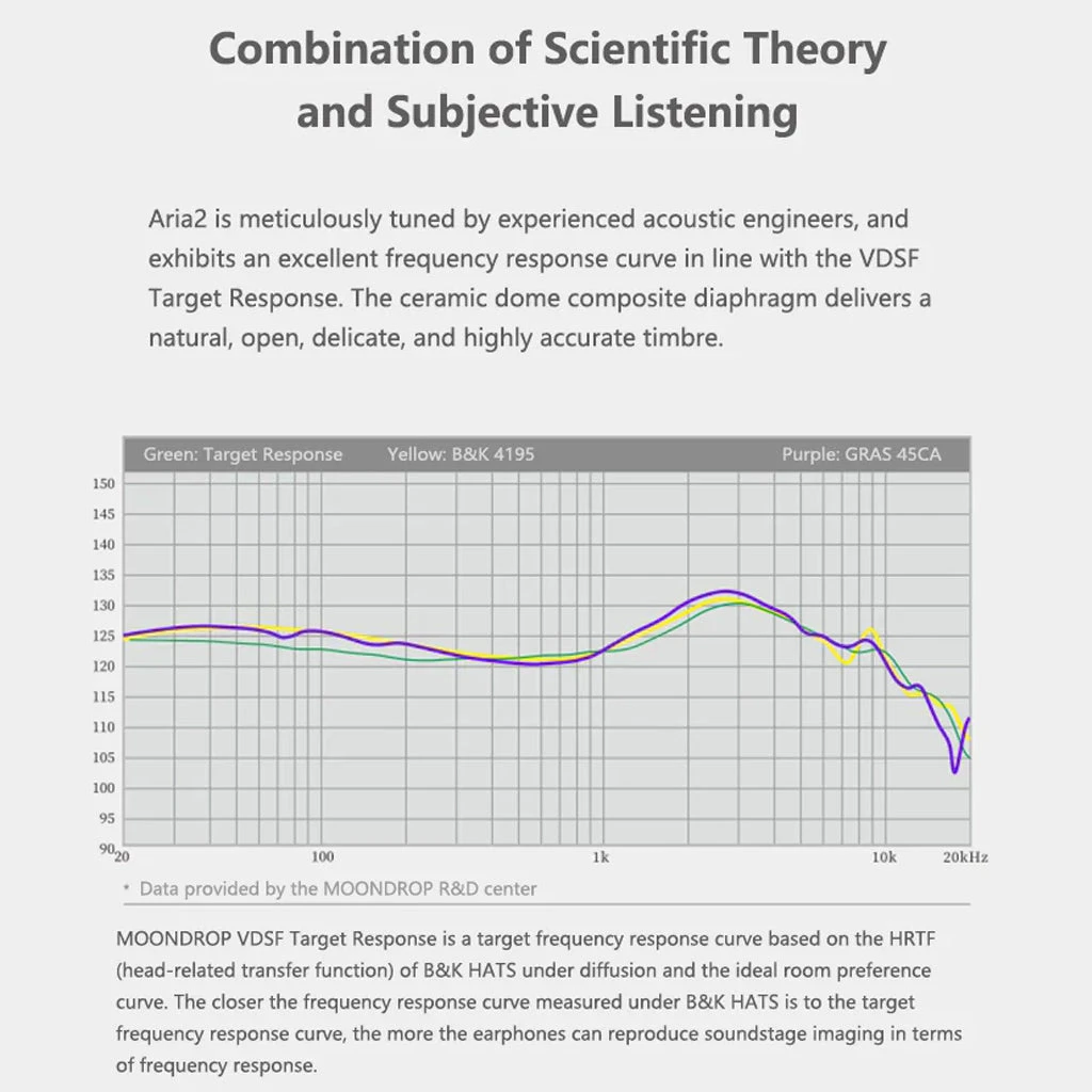 The Moondrop Aria II uses a special speaker to make music sound really clear and accurate. This speaker is designed to work well for all the different sounds in music. It has a unique coating on its surface to make high-pitched sounds smooth and free from distortion. This special design ensures that you get the best sound quality.