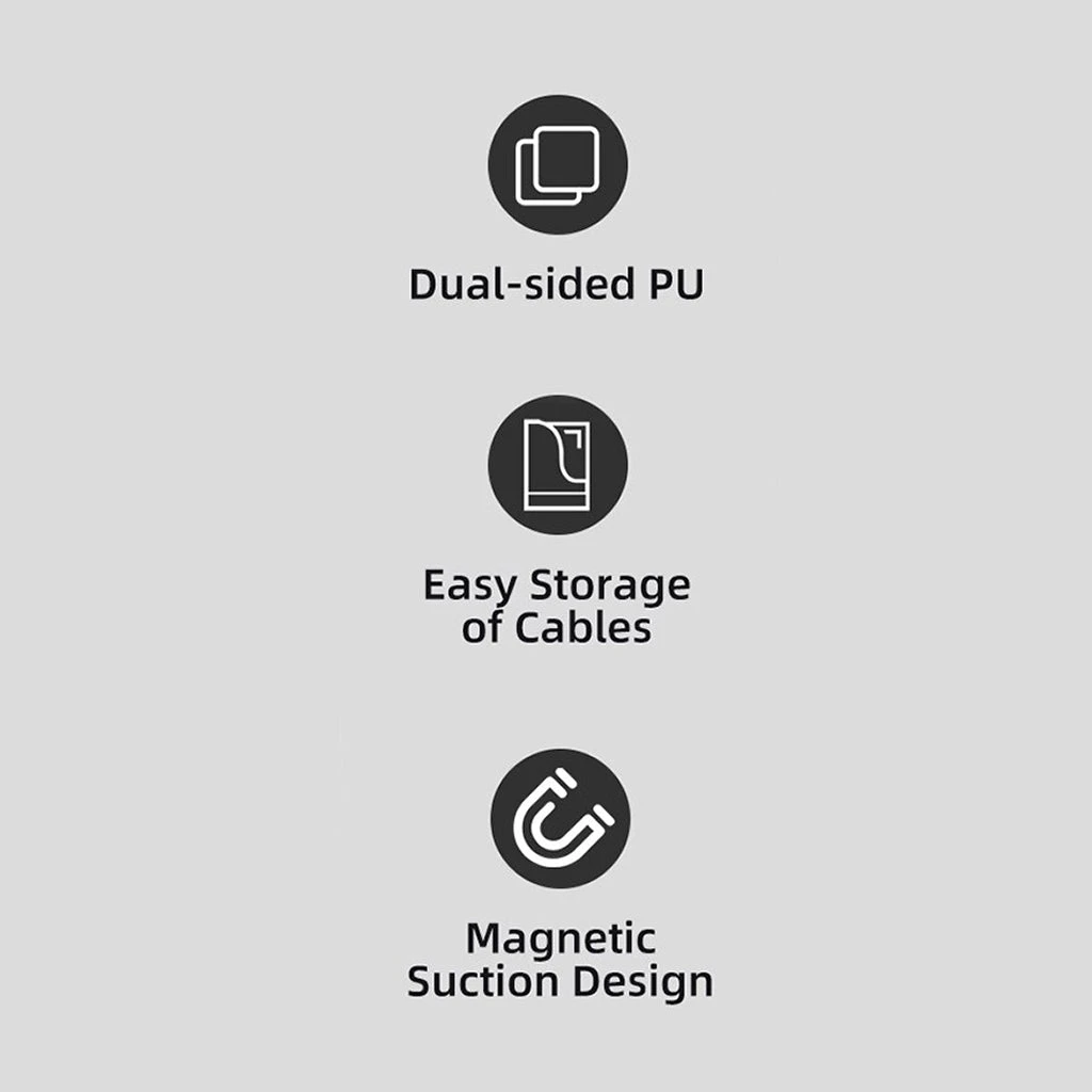 The combination of PU leather and magnetic design not only offers functionality but also adds an aesthetic touch to your cable management setup. It’s a stylish accessory that complements your devices and workspace.