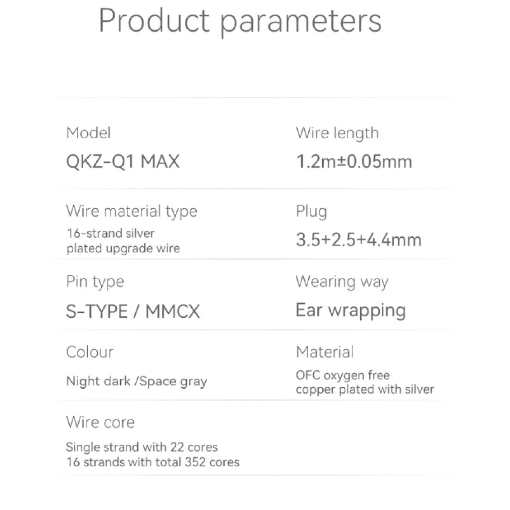 : QKZ Q1 MAX is equipped with 16 Strands of perfect proportions and offers high performance. This cable comes with a single strand with 22 cores and 16 Strands with total 352 cores are also available with this cable. Q1 MAX cables are also suitable for most types of headphones.