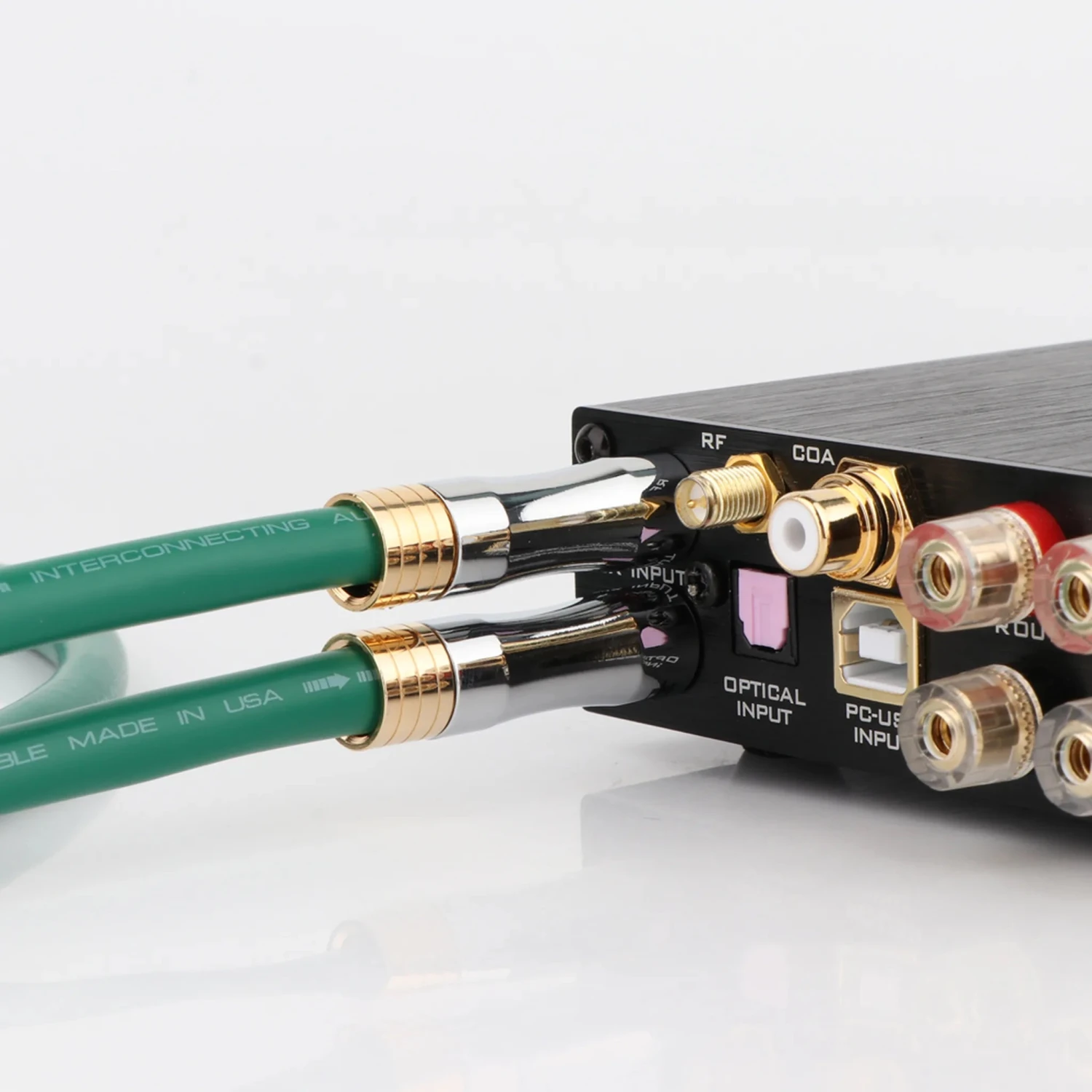 - Used Self-locking RCA connectors By Taiwan , which is made of copper-plated plug, metal shell, and advantages of metal shell can be shielded from external interference.