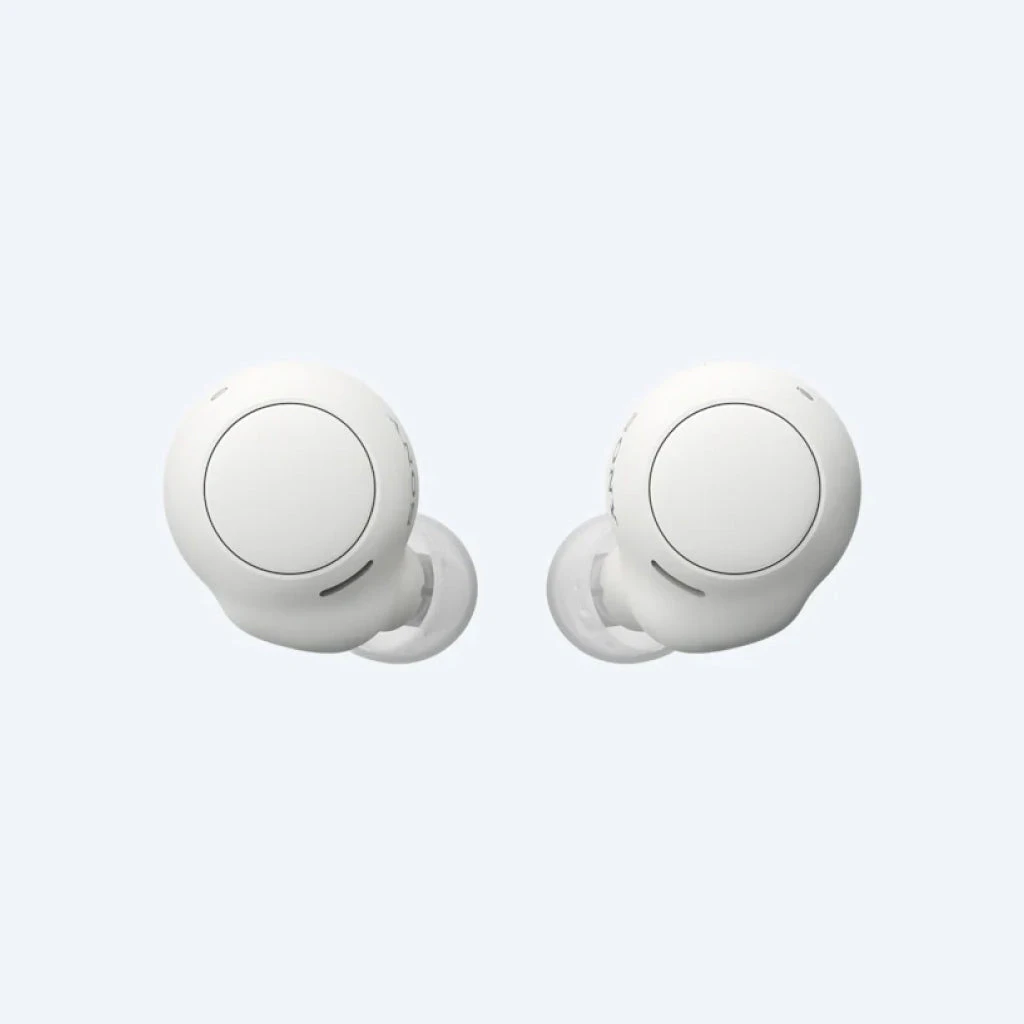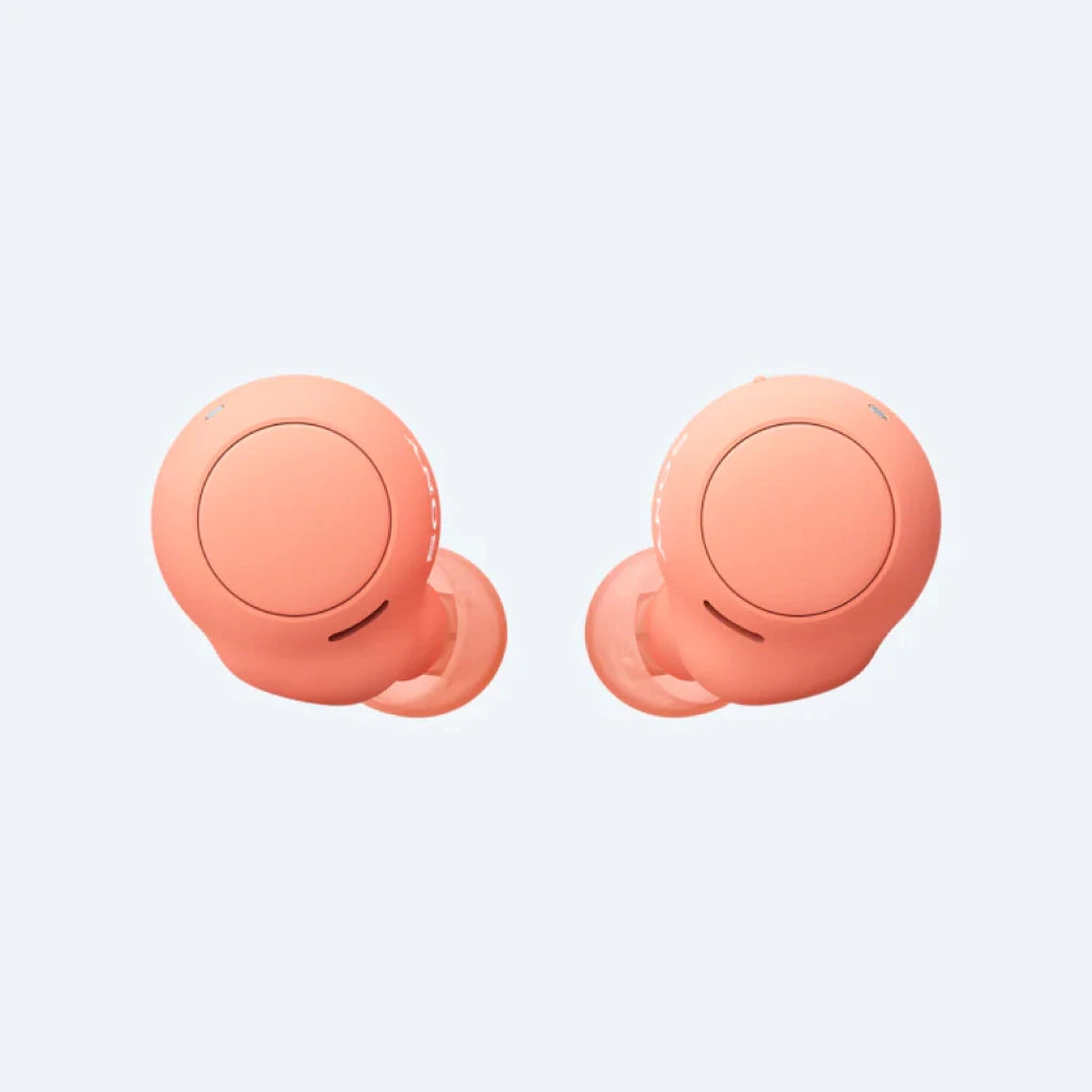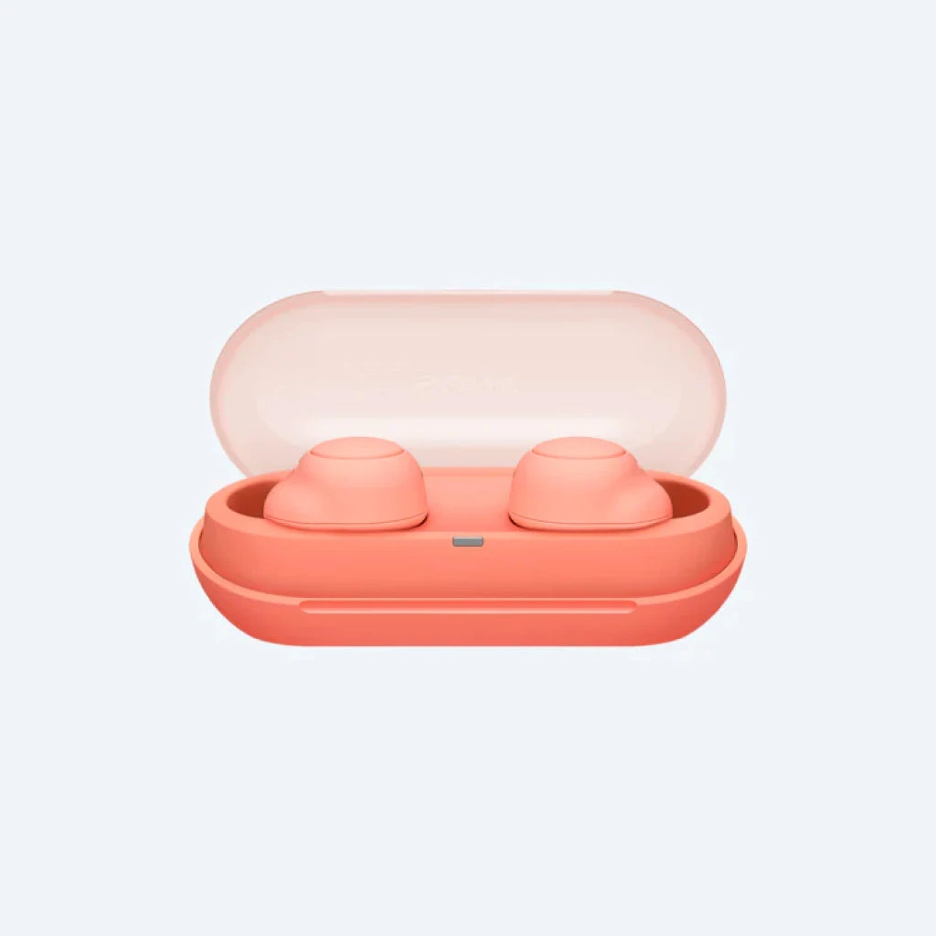 The WF-C500 headphones combines a shape that matches the ear cavity for a perfect and more stable fit. The cylindrical charging case is small and easy to carry in a pocket or bag so you can take your earbuds everywhere. Its translucent lid with a texture like frosted glass gives the case a stylish, luxurious look.