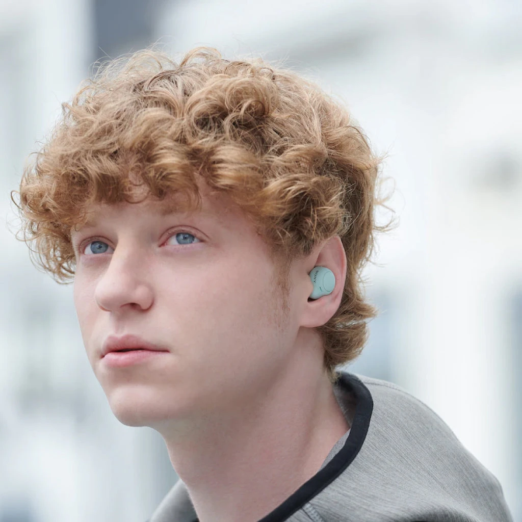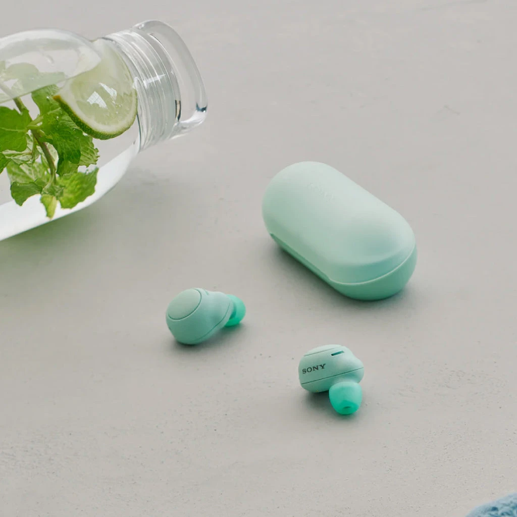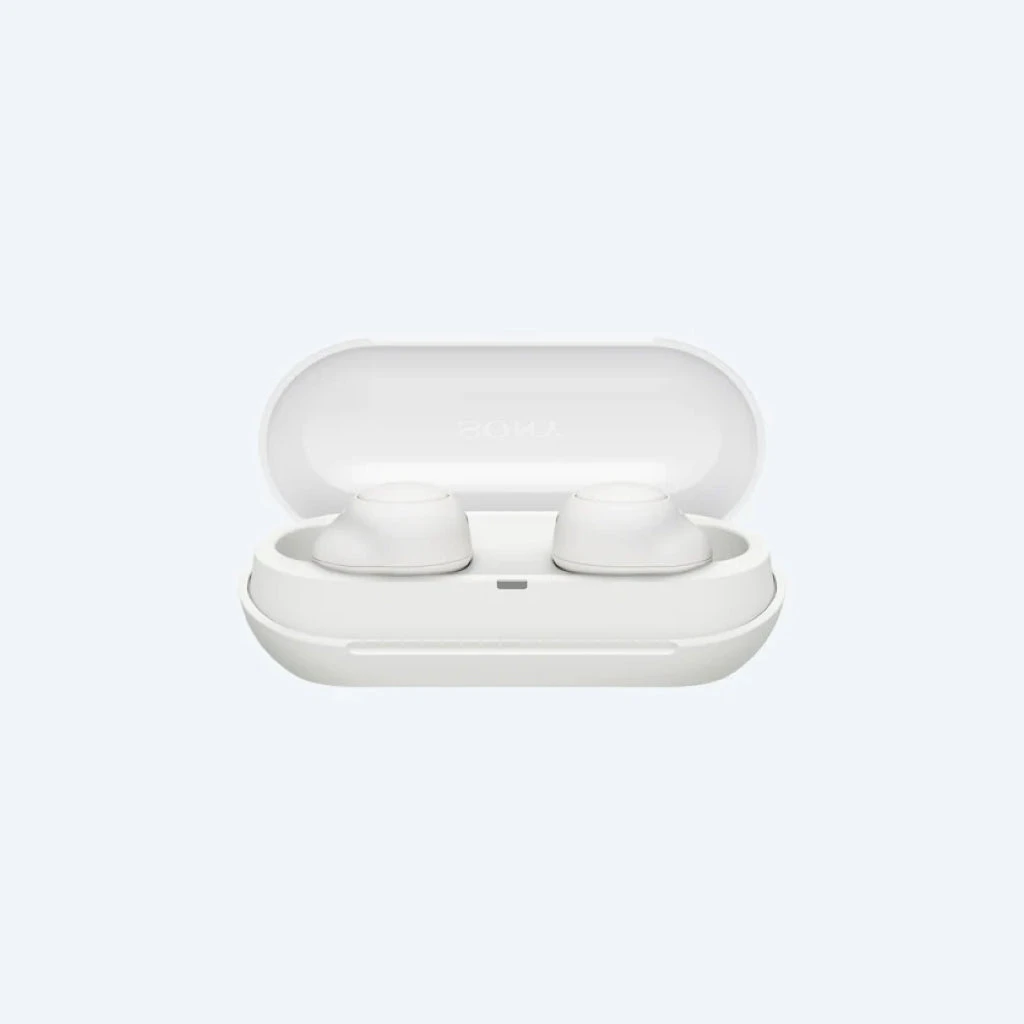 The WF-C500 headphones combines a shape that matches the ear cavity for a perfect and more stable fit. The cylindrical charging case is small and easy to carry in a pocket or bag so you can take your earbuds everywhere. Its translucent lid with a texture like frosted glass gives the case a stylish, luxurious look.