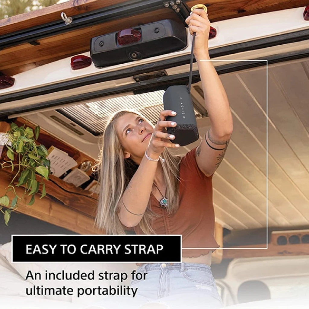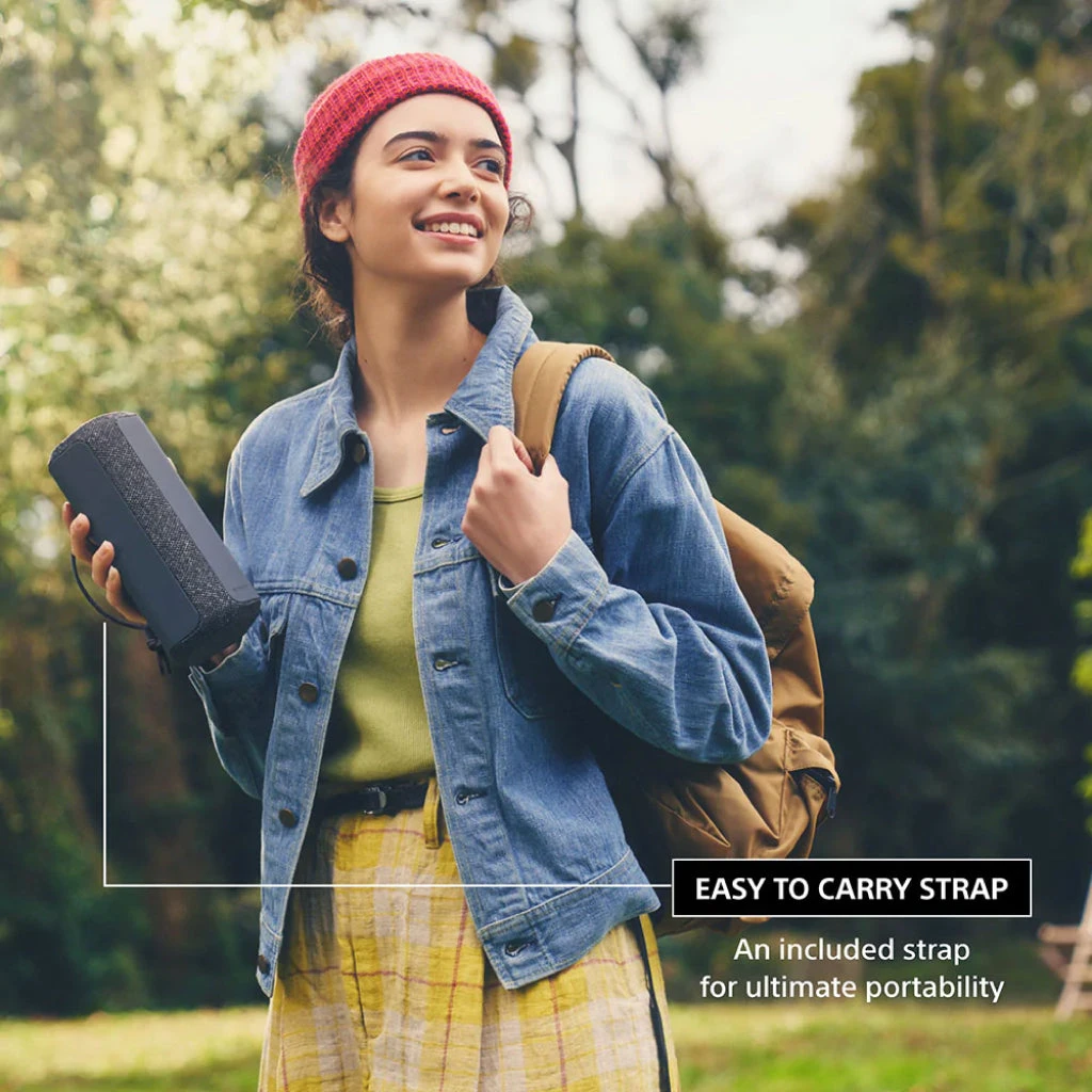 XE200 adopts a Line-Shape Diffuser that will allow your music to reach even further, even to the side of the speaker. Its portable size and handy carry strap make it easy to take it anywhere.