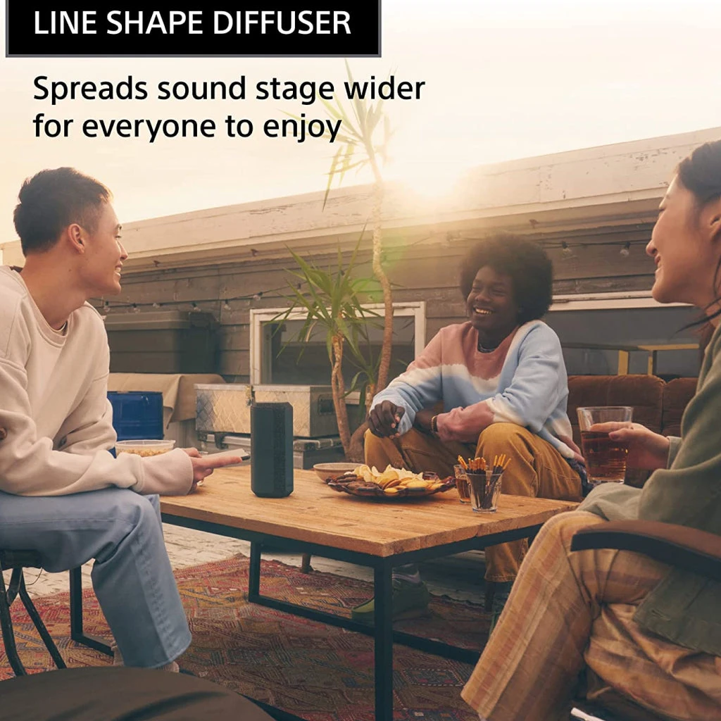 The XE300 has a Line-Shape Diffuser that will help you sound reach further than ever. With its portable size and 24-hour battery life, it’s the perfect partner for your next party.
