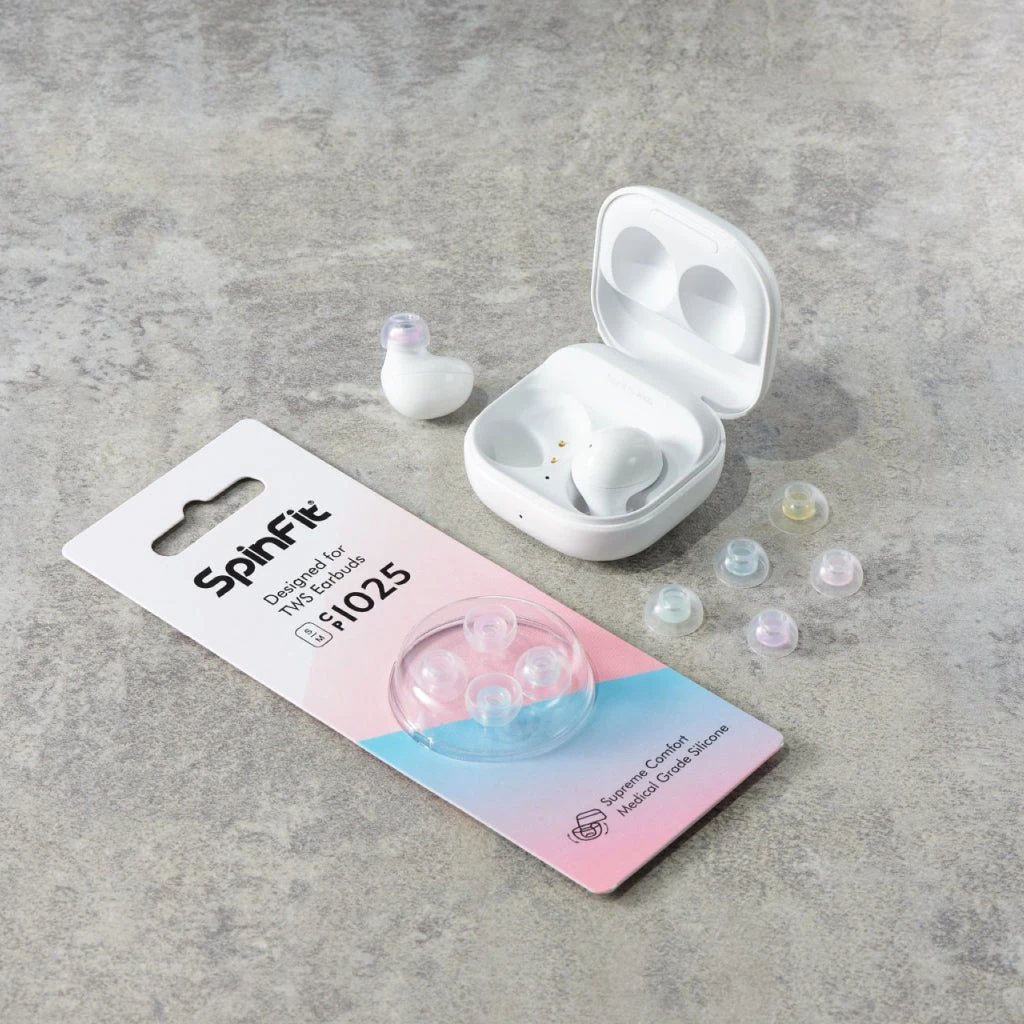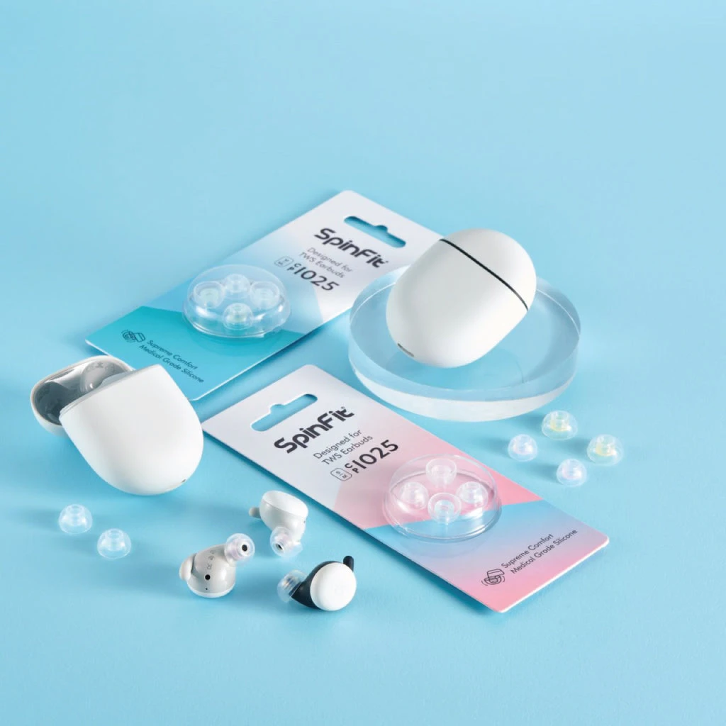 Squeeze the edge a bit and gently push the eartips on. Don’t worry too much about breaking them. All Spinfit eartips are made of high-quality silicone, which is very flexible. But please be gentle with them like you always are.
