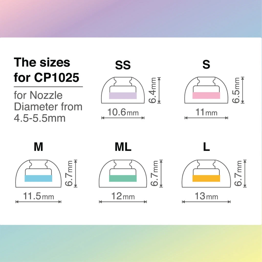 3.6mm, for earbuds nozzle diameter from 4-5.5mm.