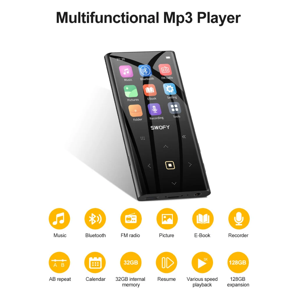SWOFY M2 Mp3 player comes with 32GB internal memory, you can save your favorite movies, music, and learning materials into the machine. Also, it allows expand memory up to 128G external TF card.