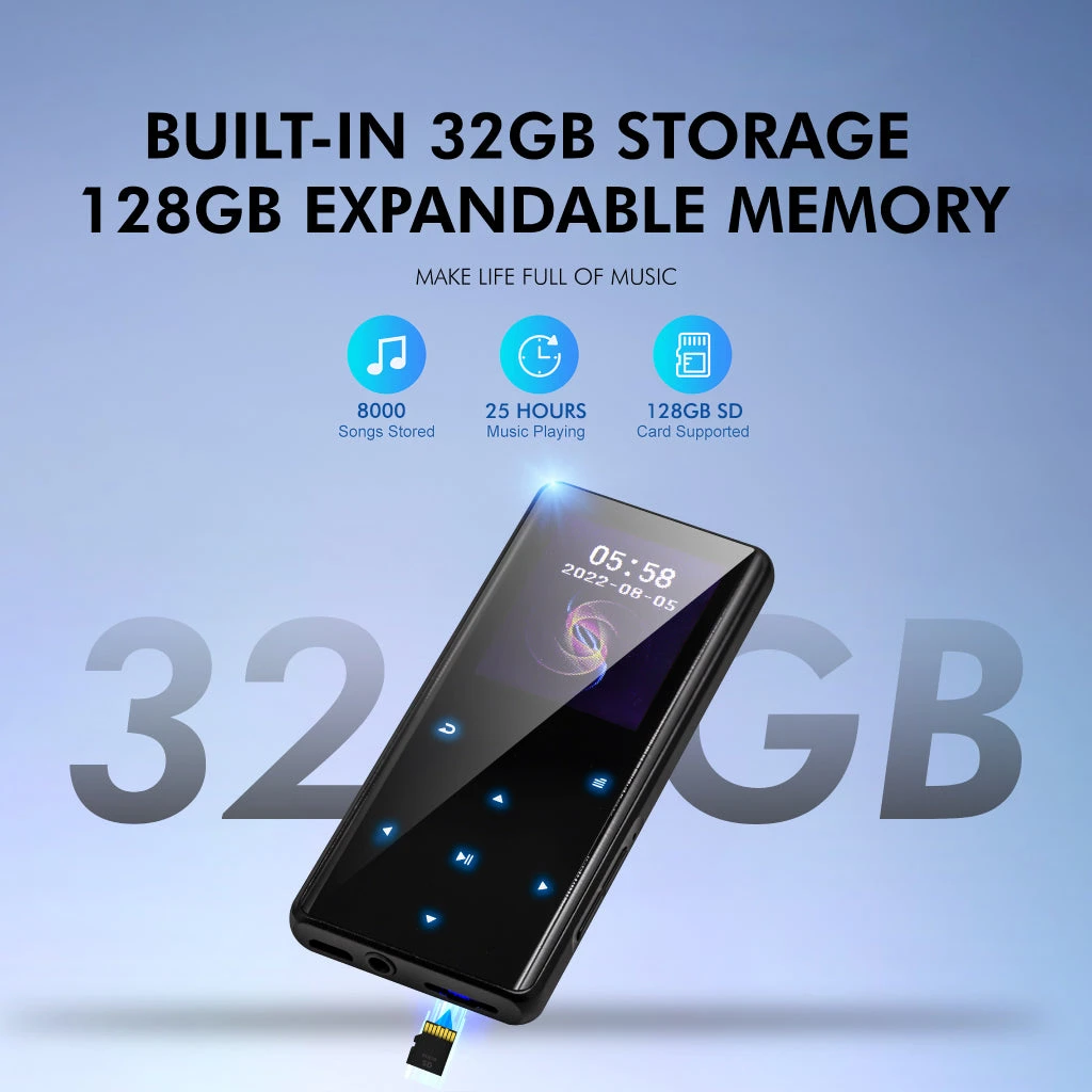 SWOFY T-MP30 Mp3 player comes with 32GB internal memory, you can save your favorite movies, music, and learning materials into the machine. Also, it allows expand memory up to 128G external TF card.