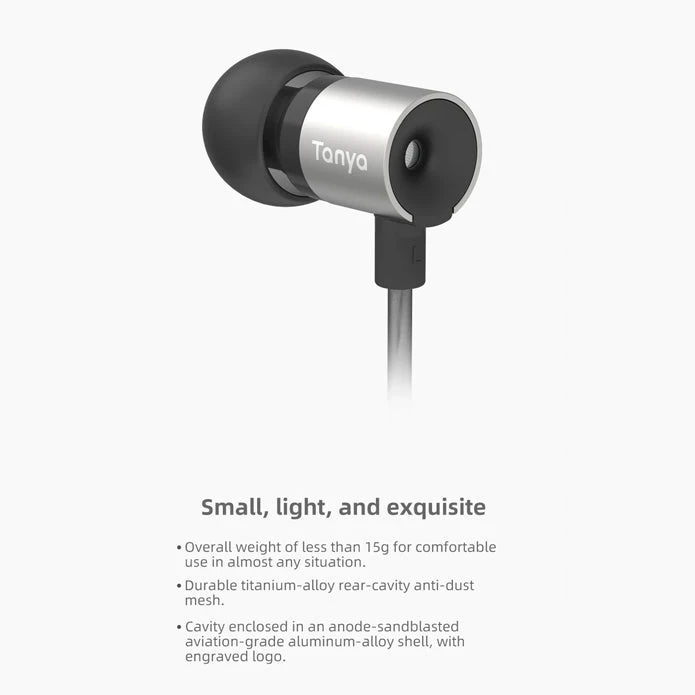 : The Tanchjim Tanya DSP not only sounds great but also looks and feels comfortable to wear. It has a sleek bullet-shaped design that is both stylish and ergonomic. The earphones are made with high-quality aluminum alloy materials. The shells of the earphones have a special finish using anodized sandblasting, giving them a refined and elegant appearance.
