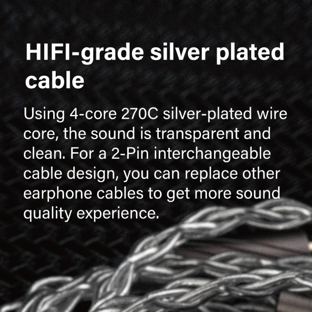 : The C3 by Tin HiFi uses 3D printing for a precise fit and comfortable wear with sound insulation. Its ear canal design comes with a silver-plated 2-pin cable that resists tangling, delivering transparent and clean sound with exceptional low-frequency performance and transient response thanks to its N52 magnet and dual magnetic circuit. The interchangeable cable design allows for customization of sound quality.