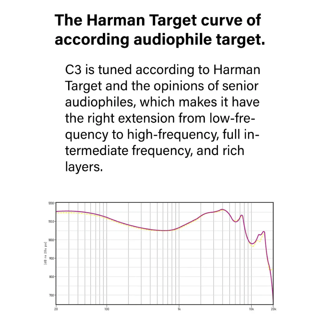 The Tin HiFi C3 earphones have been expertly tuned based on feedback from seasoned audiophiles and the Harman Target, resulting in a rich and layered sound. With deep bass extension and wide high-frequency range, these earphones are designed to accommodate different types of music and produce high-quality sound.