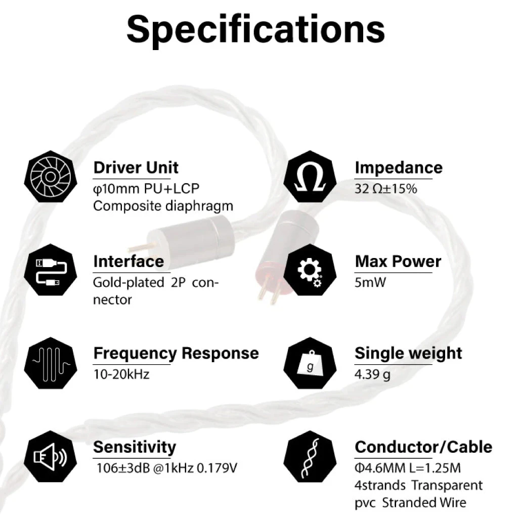 10mm Dynamic Driver| Composite Super-LCP Diaphragm | 3D Printed Ear Shells | Follows Harman Tuned | N52 Neodymium Magnets | Gold Plated 0.78mm 2 Pin Connector |Silver Plated Cable | 3.5mm Audio Jack | Lightweight & Premium Fit
