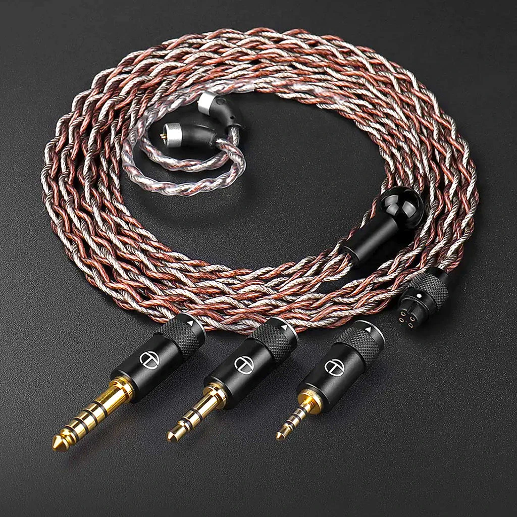 TRN RedChain earphone cable is a precisely crafted 4-core copper-silver blend, featuring two cores of high-purity oxygen-free copper and two cores of silver-plated oxygen-free copper. With a total of 216 strands in this configuration, the cable’s detailed structure enhances resolution and faithfully reproduces human vocals’ richness. This structure notably enhances the resolution and accurately reproduces the richness of human vocals.