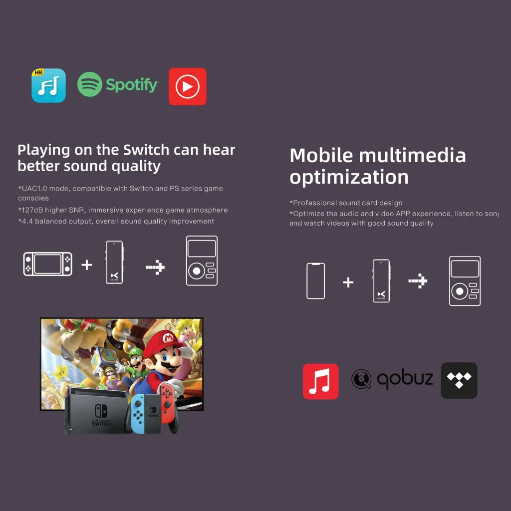 Weighing only 28g, Link2 Bal is easy to carry and use in any occasion. As compact as a USB disk, you can put it in your pocket anywhere you are going to. It also compatible with mainstream multi-platform or scenario application like computer, tablet, iPhone, Android, you can also hear better sound quality when playing on the Switch.